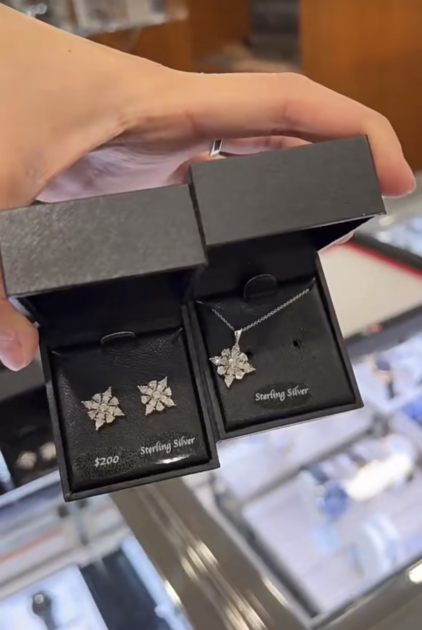 梅西百货商场自有品牌,真钻石💎雪花❄️项链和耳钉,纯银配件,原价一套400刀,现在只要💰680/套🇺🇸直邮!单买项链或耳钉,¥399直邮到手!