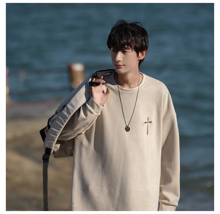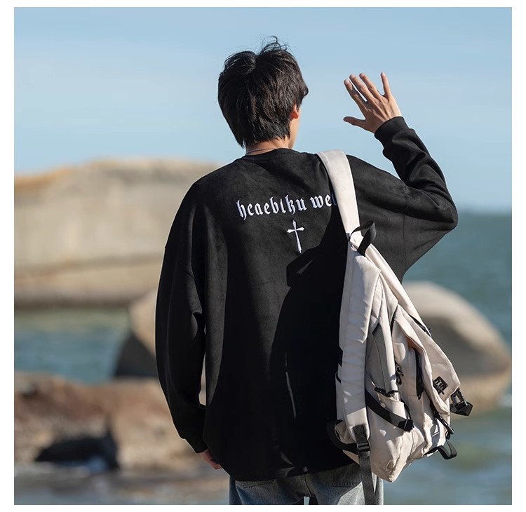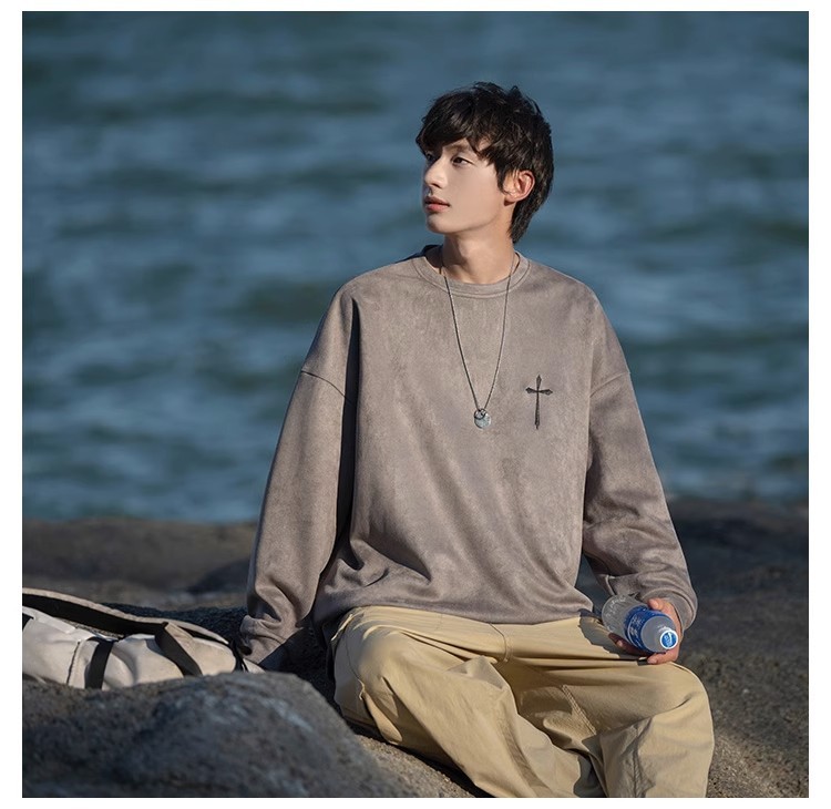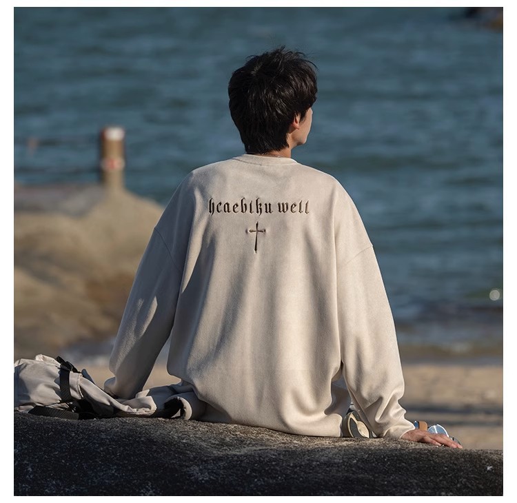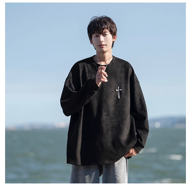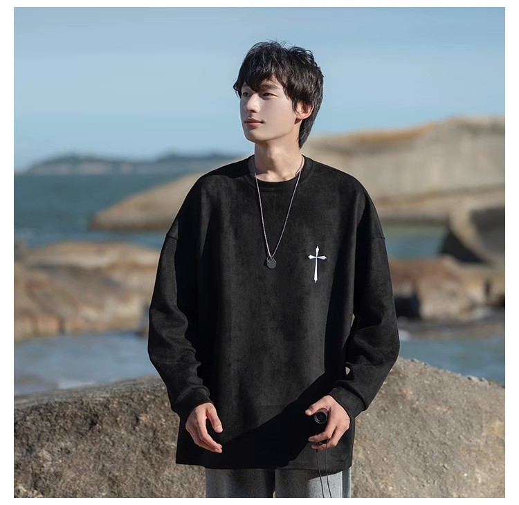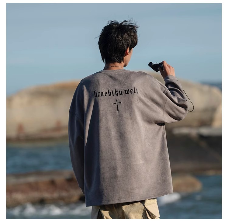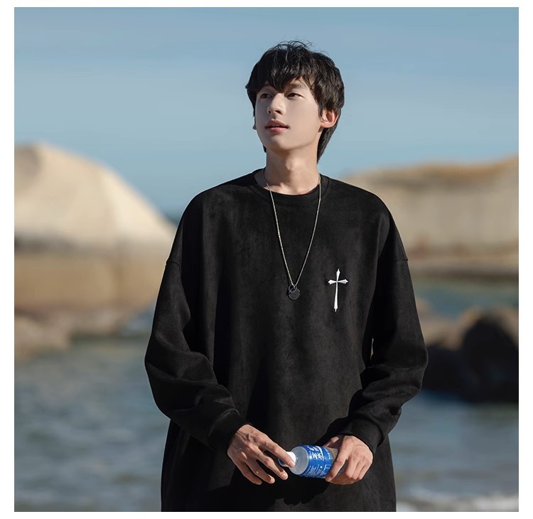 【十字架痞帅高街❗️宽松上衣】麂皮绒卫衣春秋季新款美式慵懒感潮流休闲宽松套头高街百搭上衣男衣服父亲节礼物新年礼盒年货礼盒