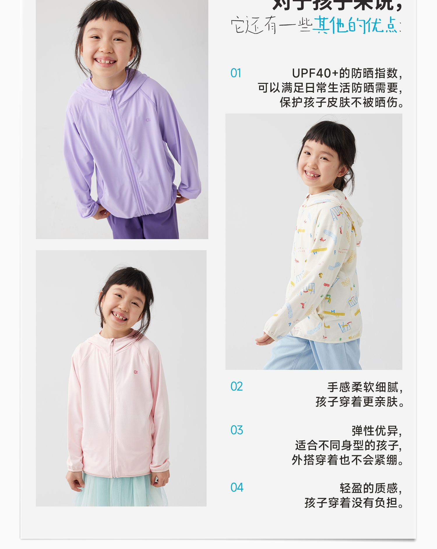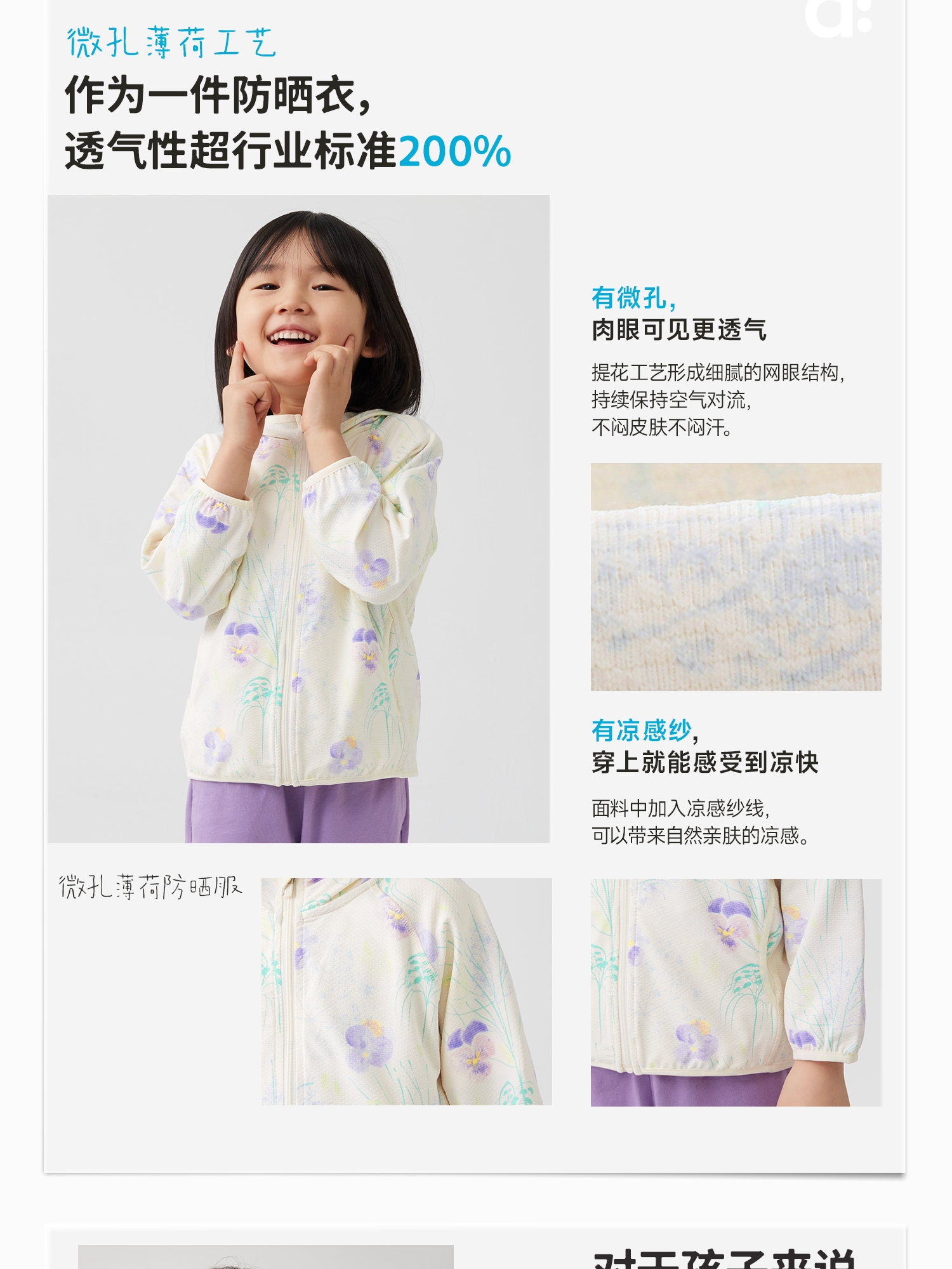 【好友特惠】幼岚「微孔薄荷」凉感防晒服UPF40+轻盈亲肤24春新款儿童防晒衣ZY