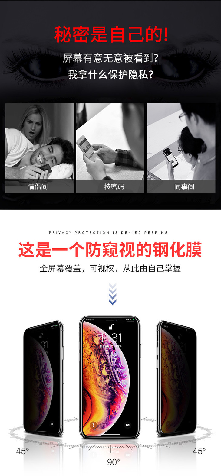【手机膜】*适用iPhone12防窥钢化膜 全屏手机钢护玻璃膜苹果12防偷窥膜11/8P
