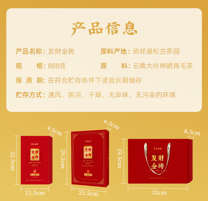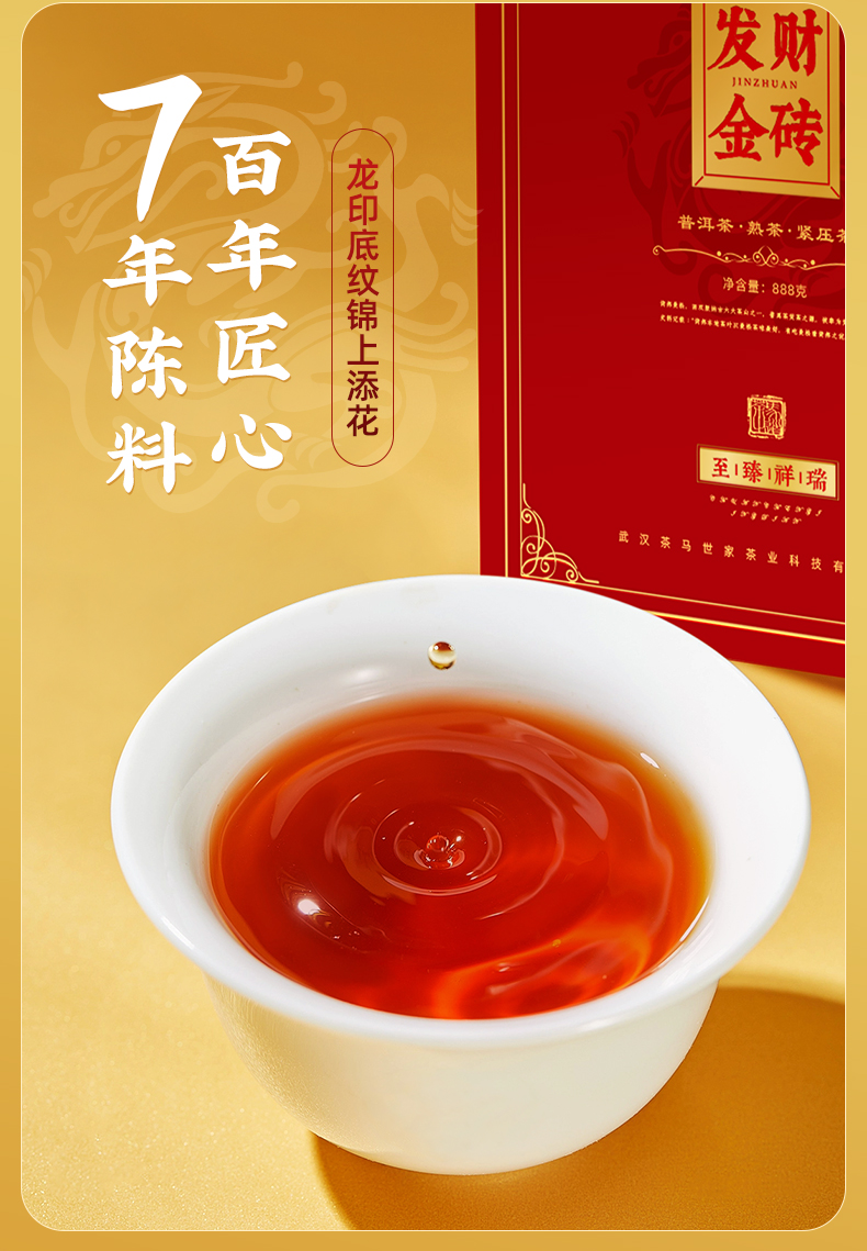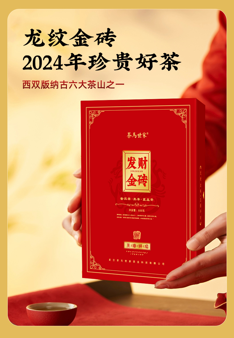茶马世家正宗曼松7年陈普洱茶发财金砖礼盒装888g