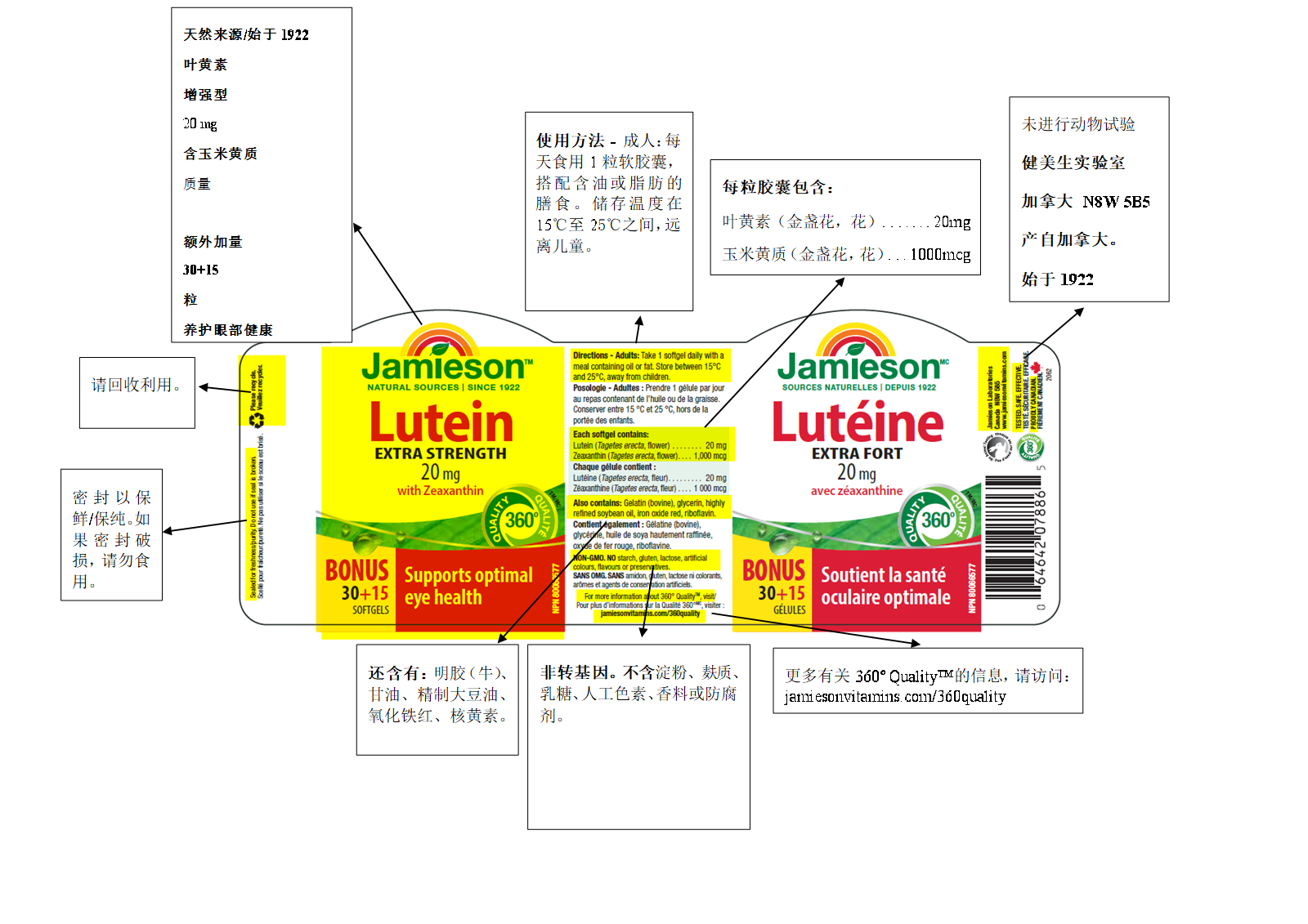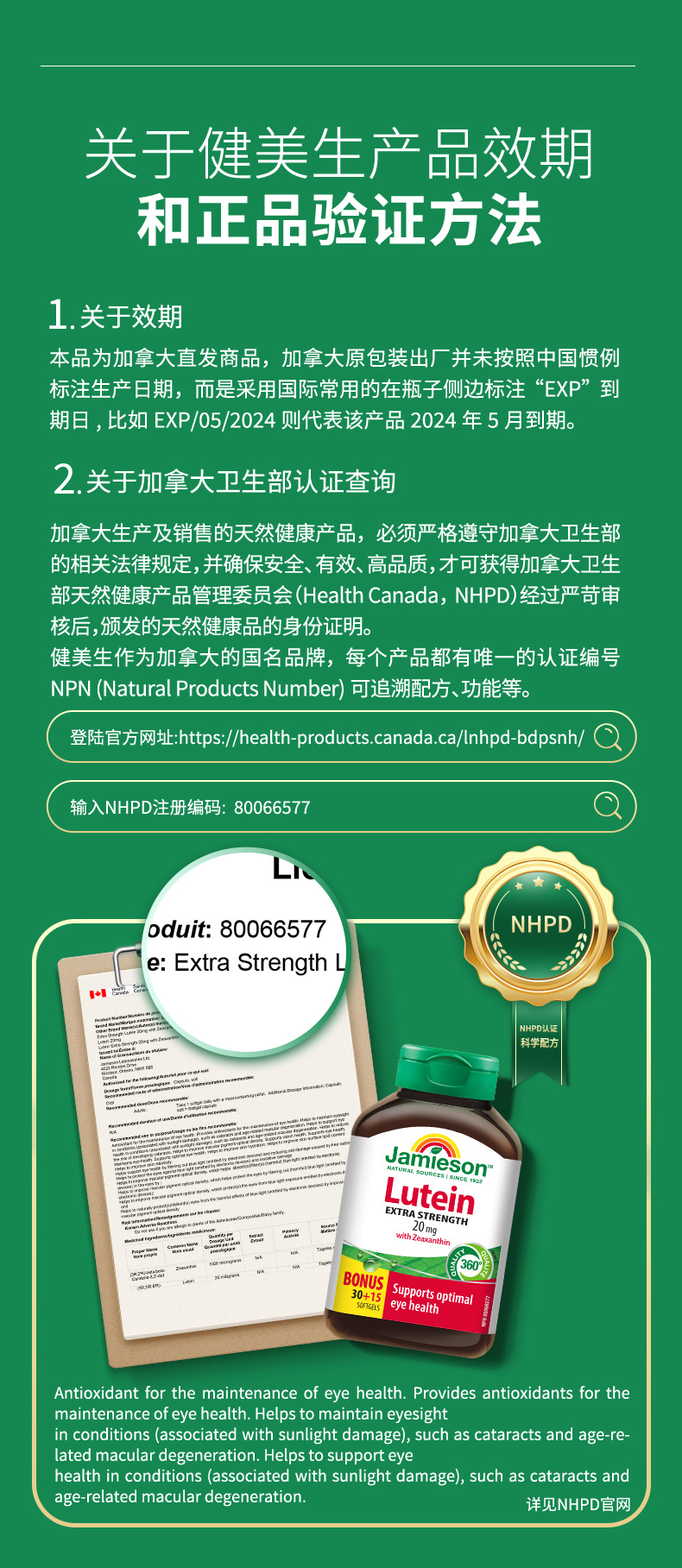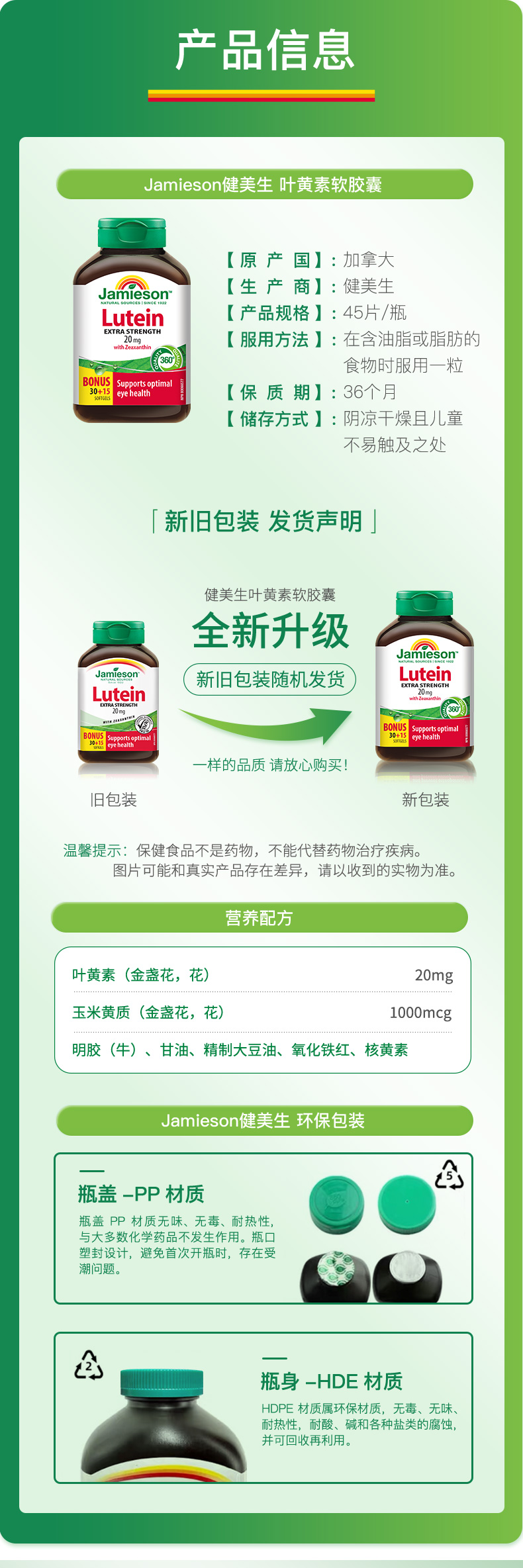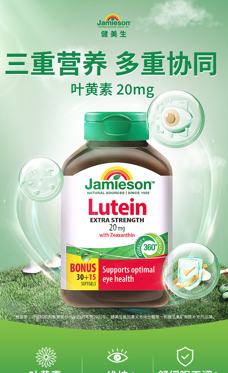 【分销】Jamieson健美生叶黄素软胶囊20mg45粒呵护双眼加拿大原装进口