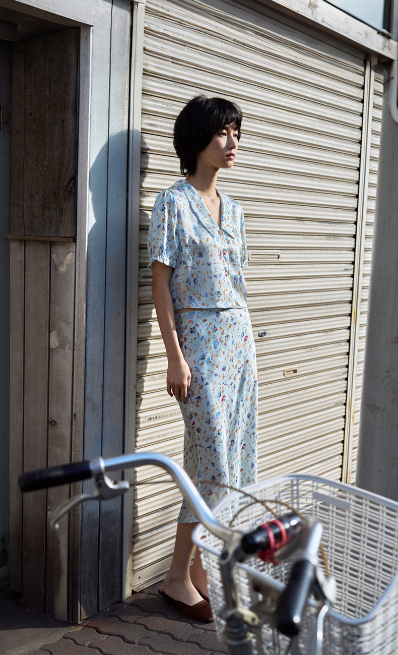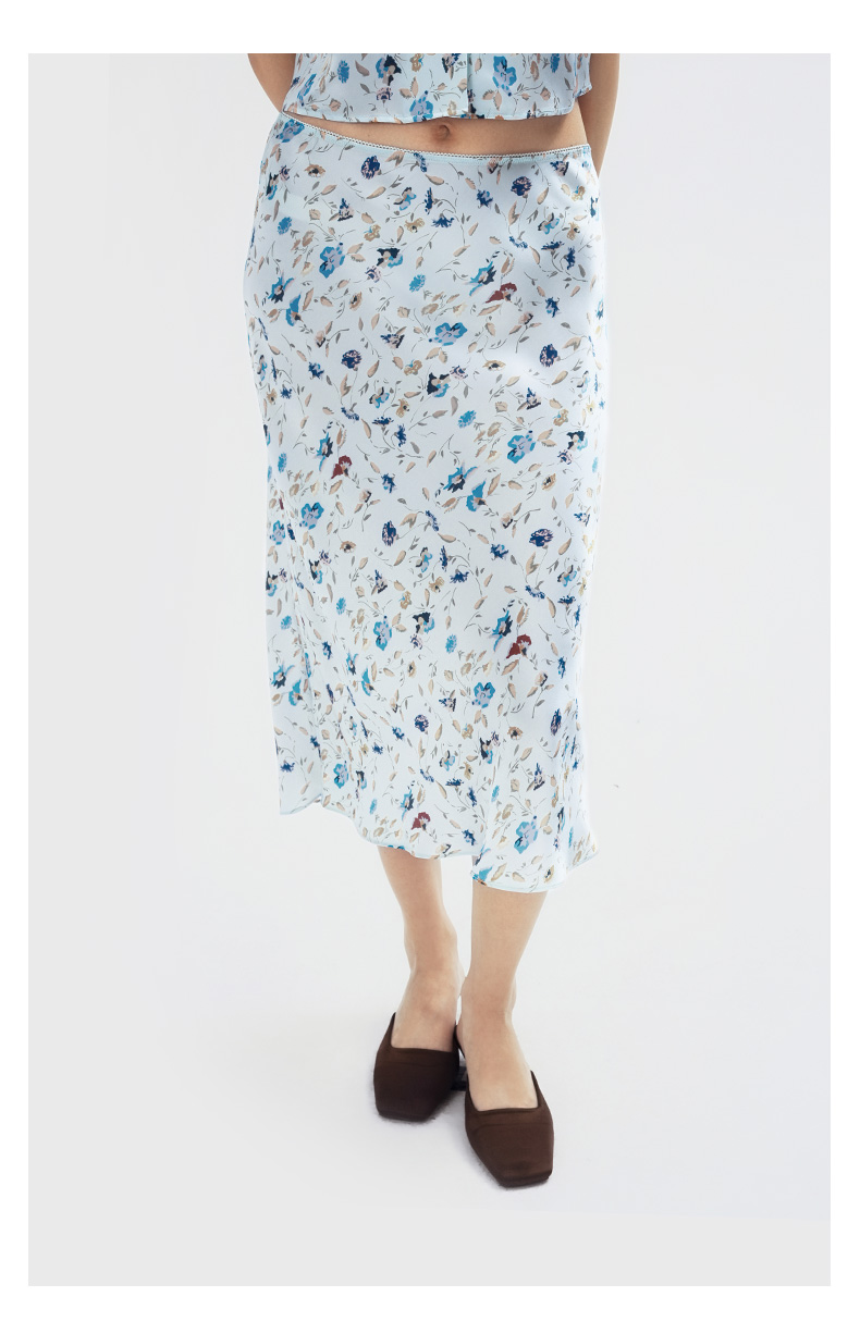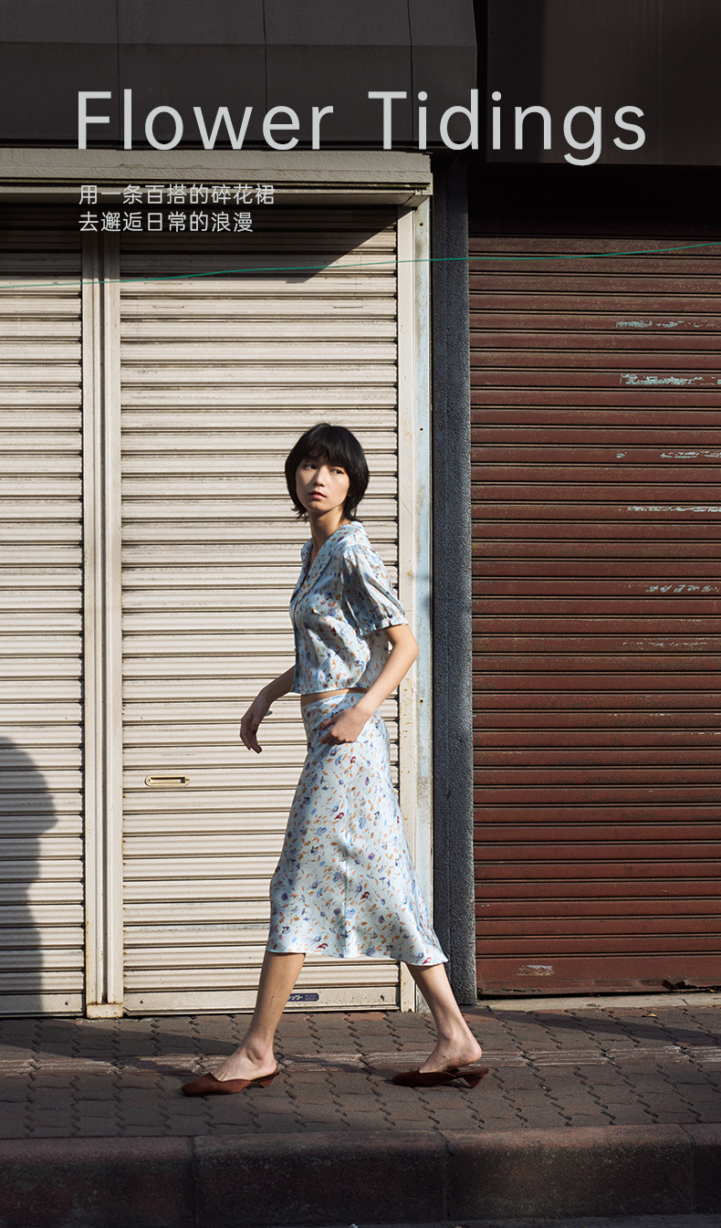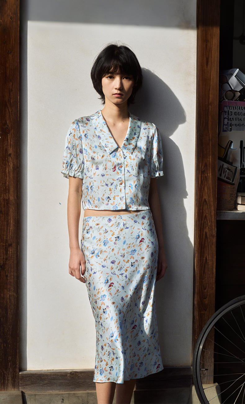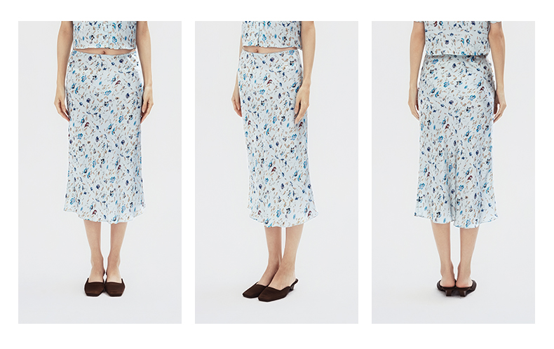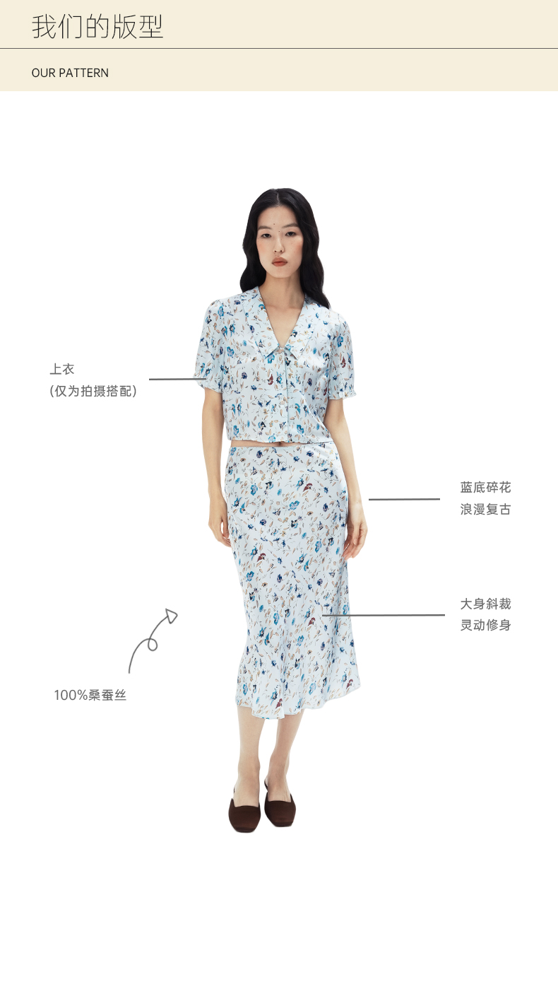 烂漫田园』桑罗蓝底碎花复古真丝半身裙100%桑蚕丝女款2026新款