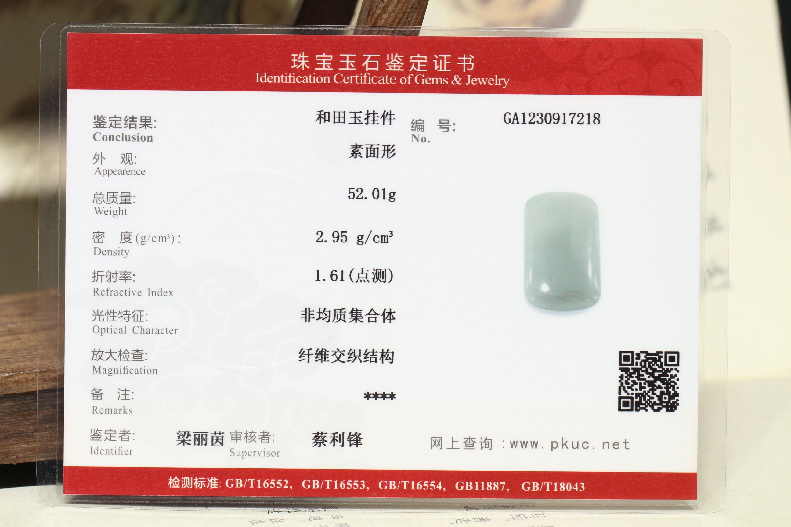 和田玉烟紫玉【平安无事牌】吊坠 配精美挂绳