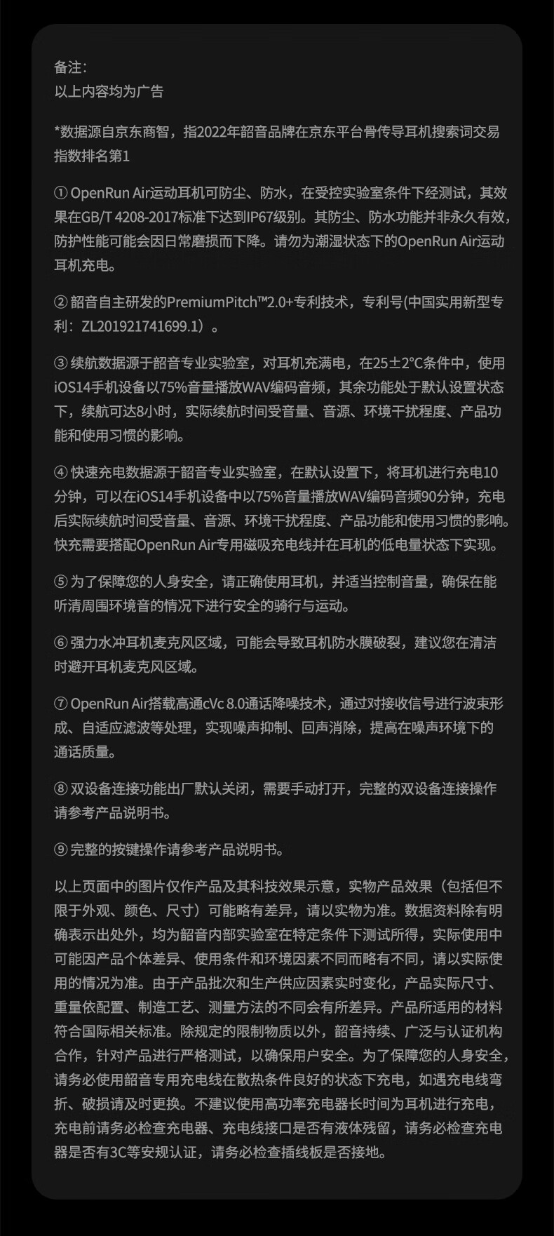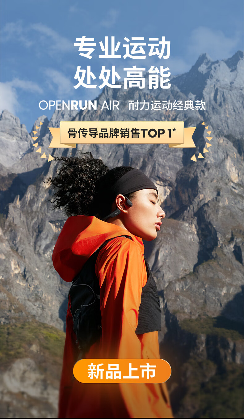 韶音(SHOKZ)【520礼物】OpenRun Air骨传导蓝牙无线耳机耳麦 开放式运动跑步长续航 10分钟闪电快充