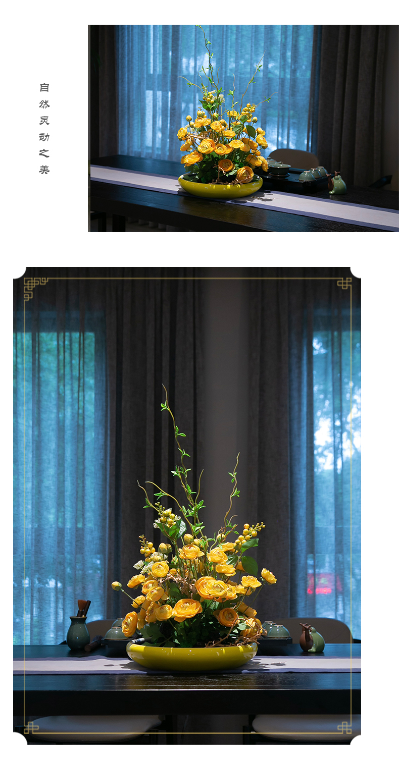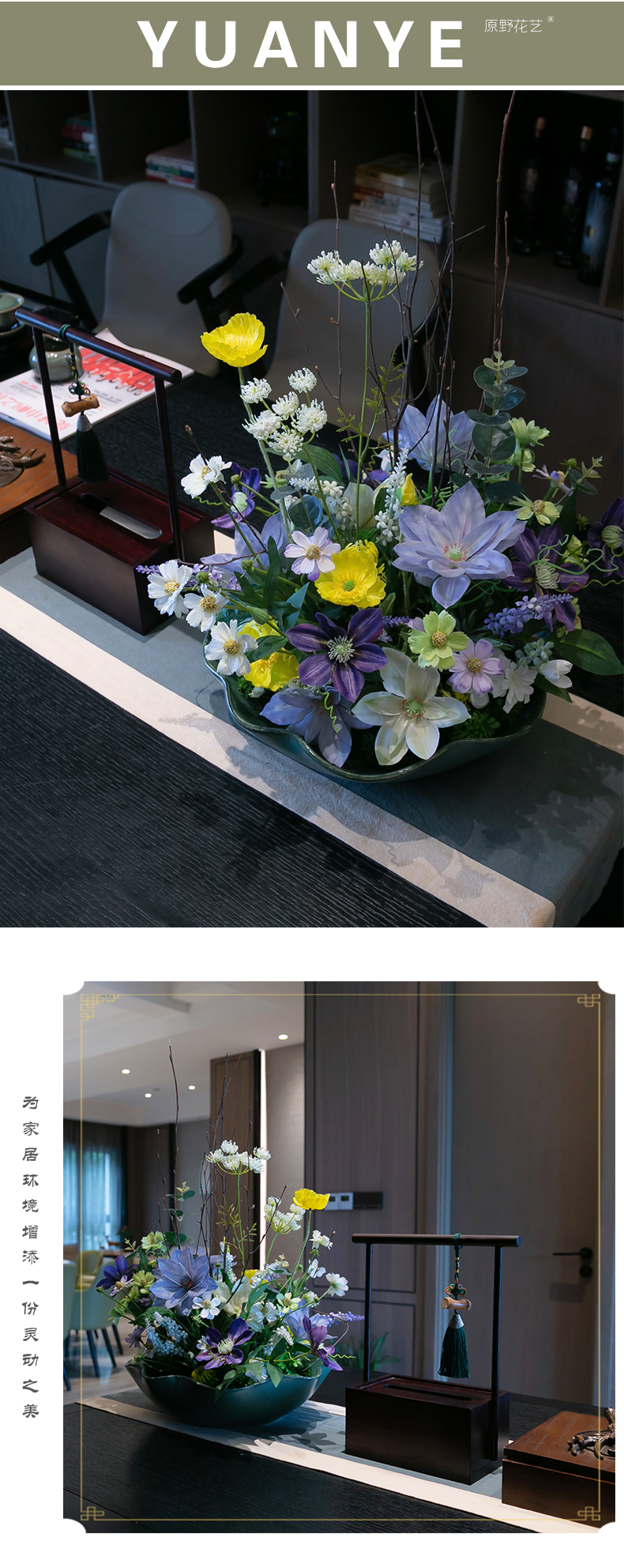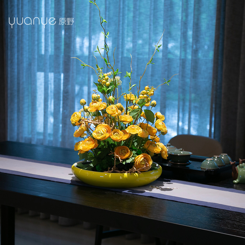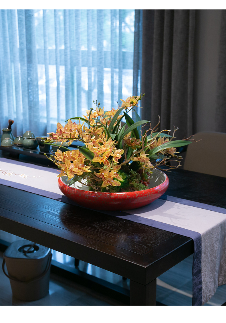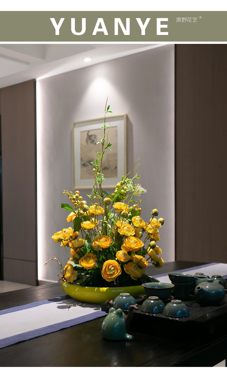 酒店高端餐桌花摆花茶桌花茶台餐厅客厅玄关摆设件茶几装饰仿真花