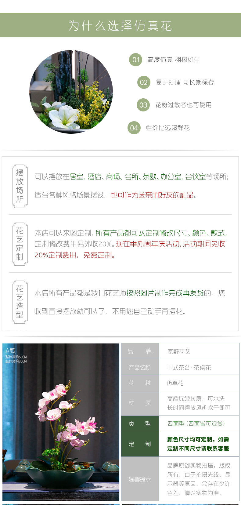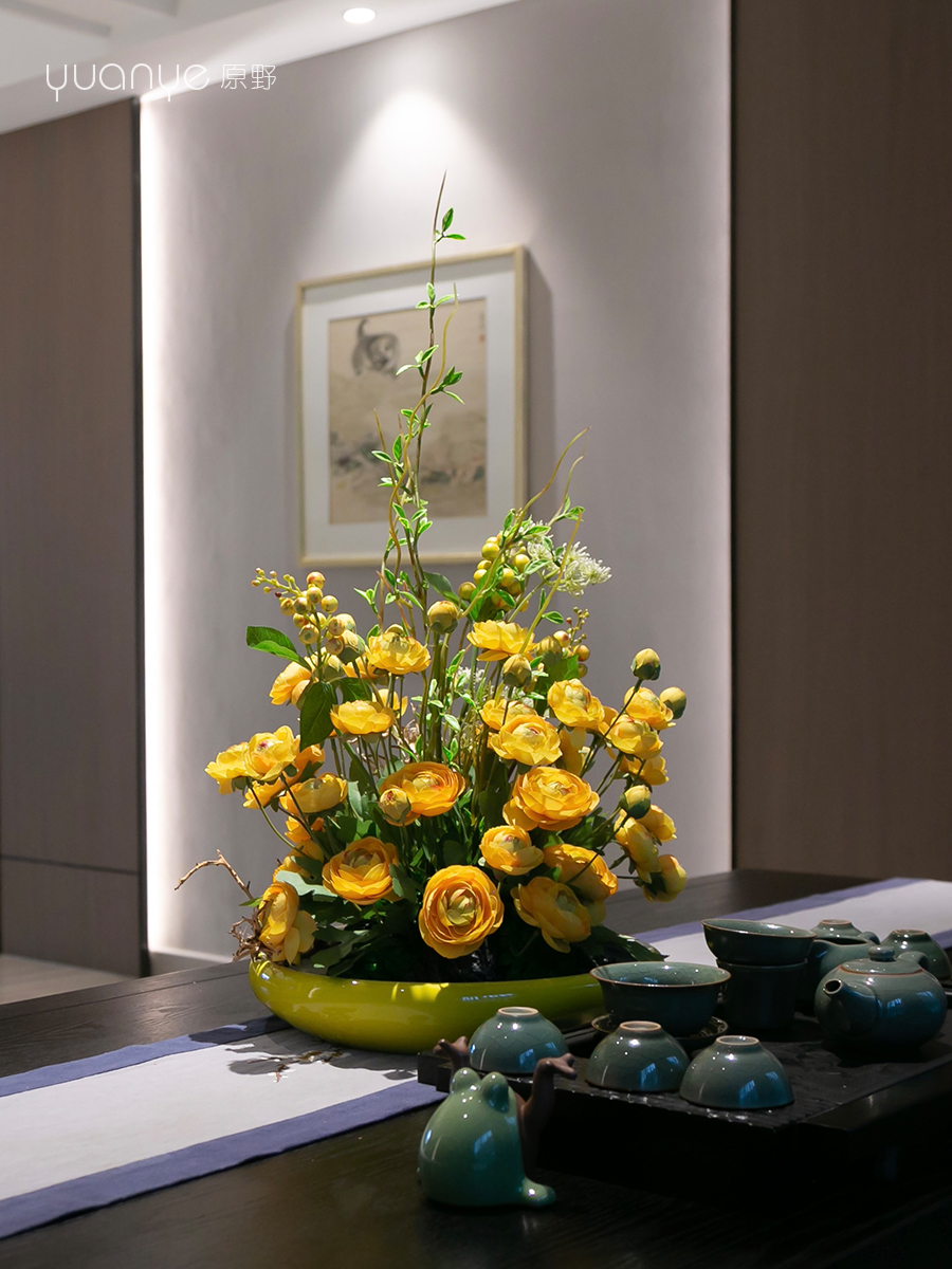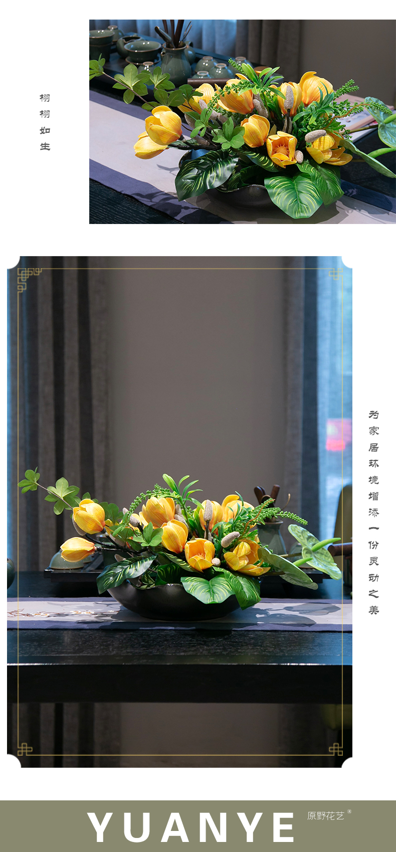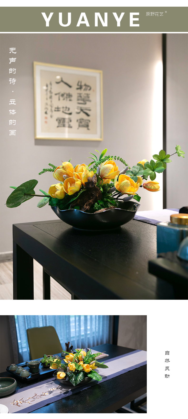 酒店高端餐桌花摆花茶桌花茶台餐厅客厅玄关摆设件茶几装饰仿真花