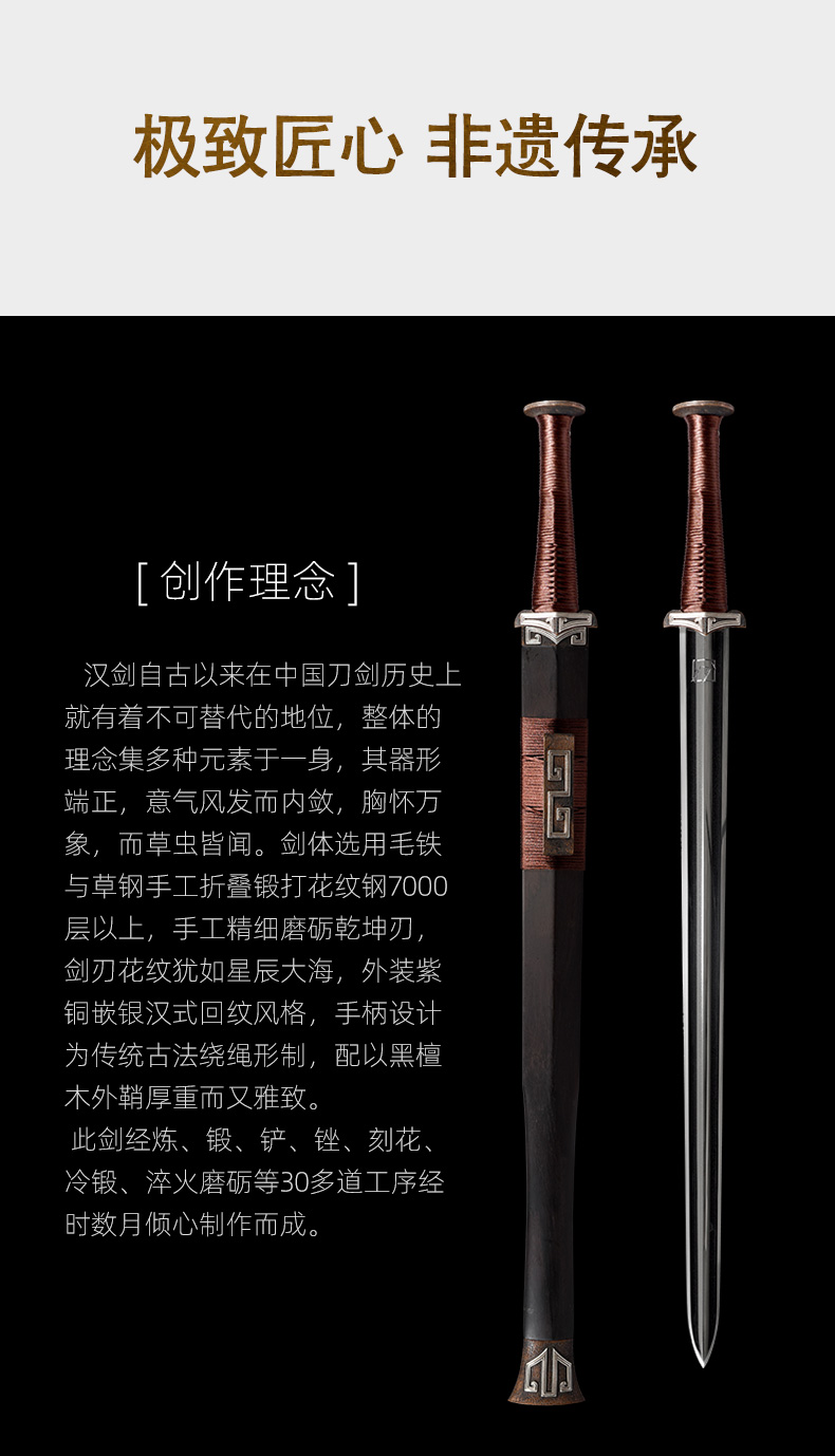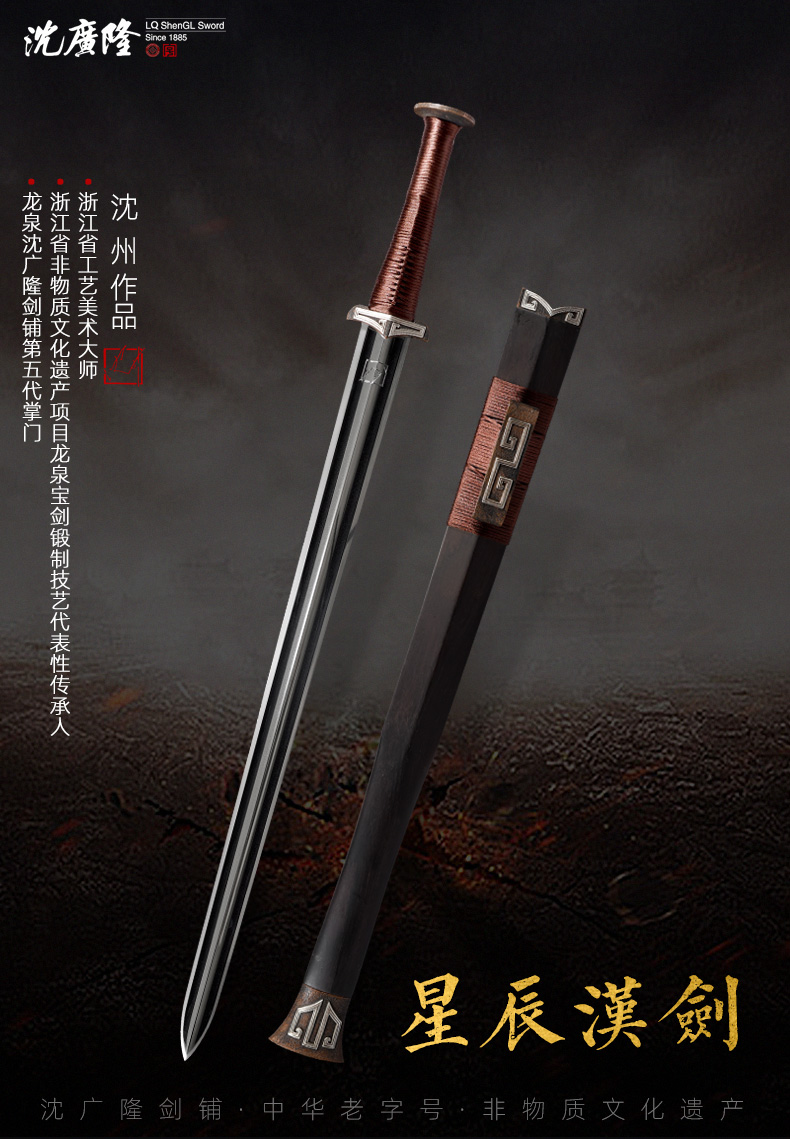 星辰汉剑 沈州作品 汉剑唐剑龙泉沈广隆宝剑 全手工传统宝剑 未开刃