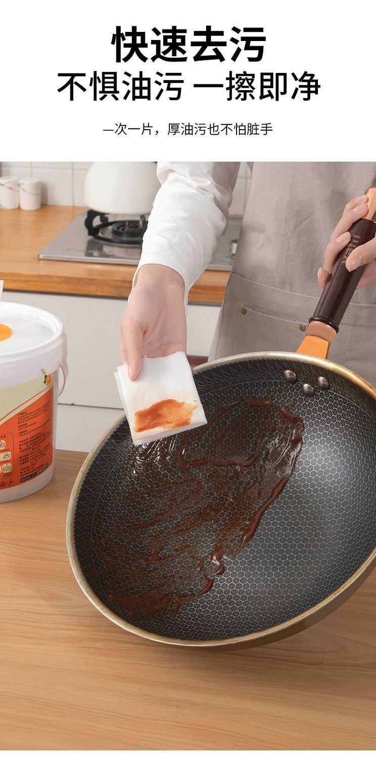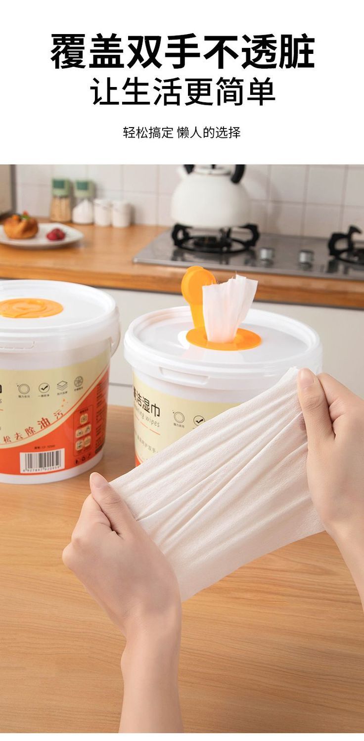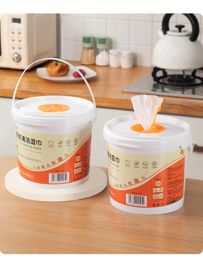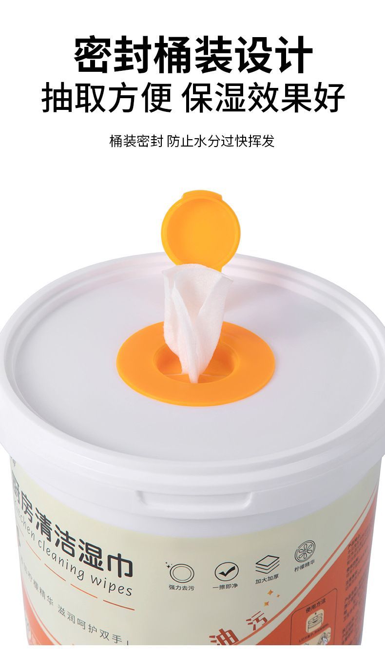 500抽超大桶装厨房湿巾油烟机灶台强效去油污渍一次性清洁湿纸巾