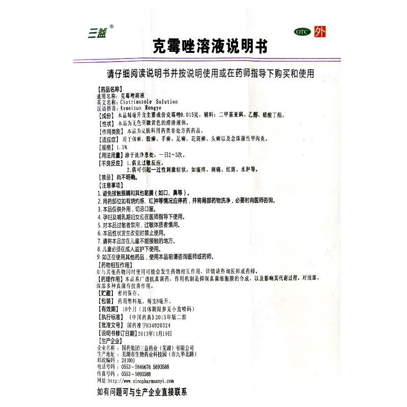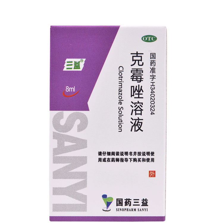 三益克霉唑溶液8ml*1瓶/盒 念珠菌性甲沟炎 体癣 股癣 手癣 足癣