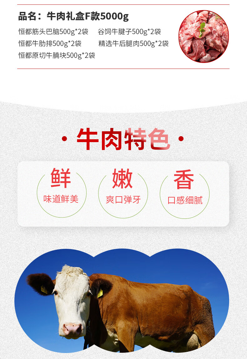 恒都 国产原切谷饲牛肉礼盒F款5000g