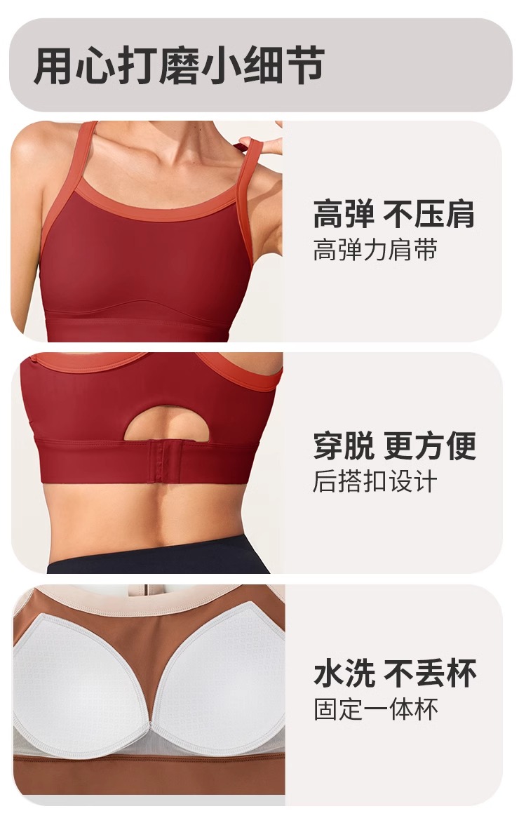 跃牌【瑜见伽人系列】春夏新款撞色高强度防震一体式运动内衣工字美背YX1176