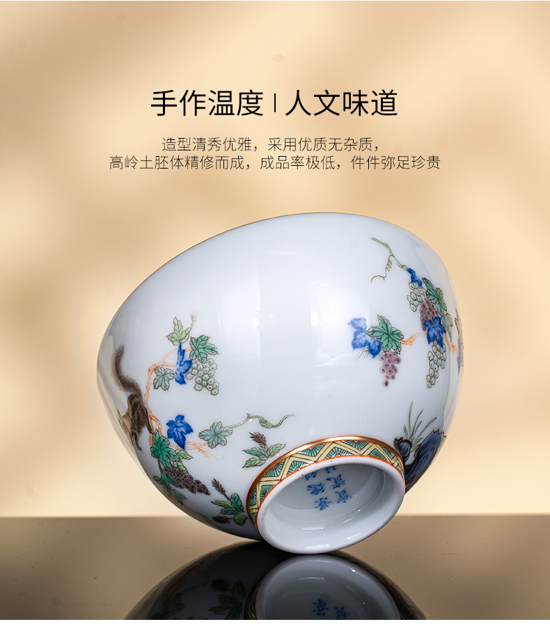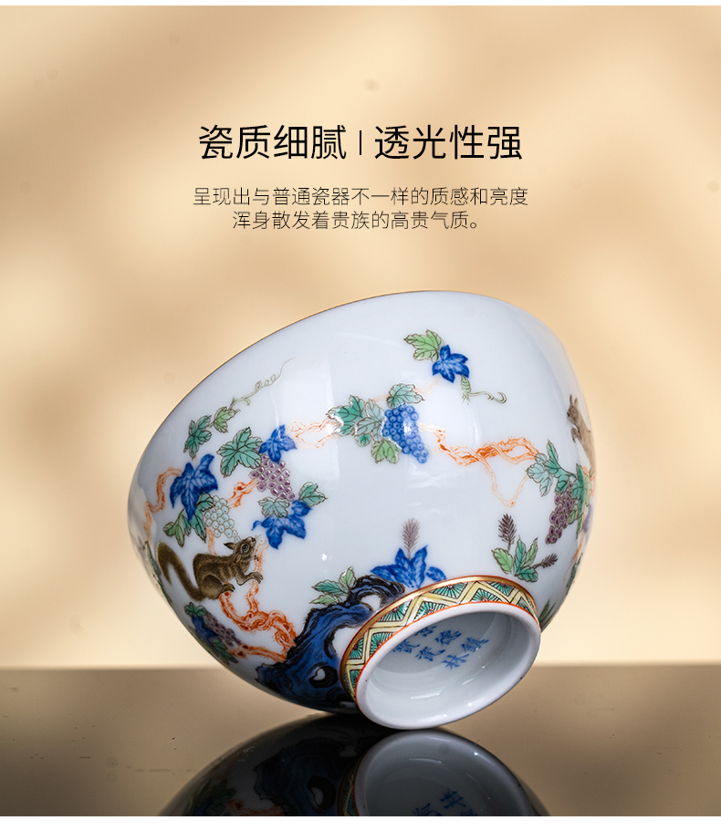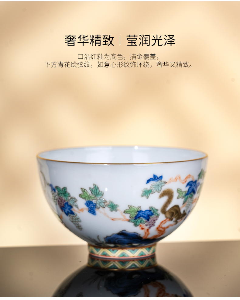 古彩矾红描金松鼠葡萄纹杯 商品图4