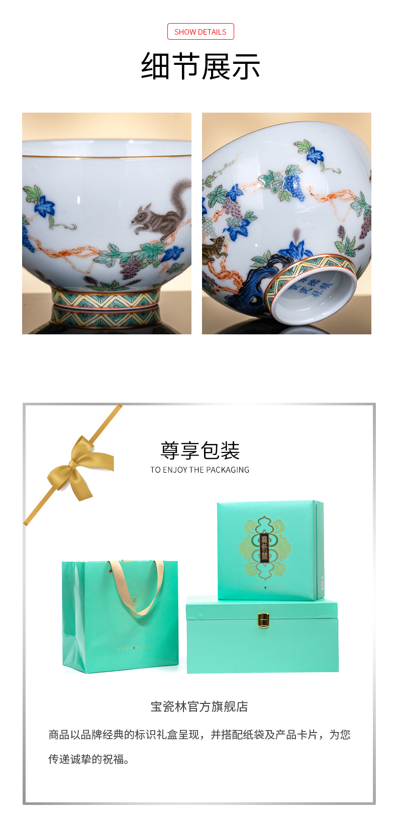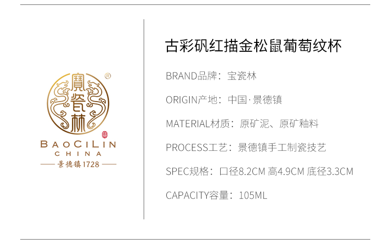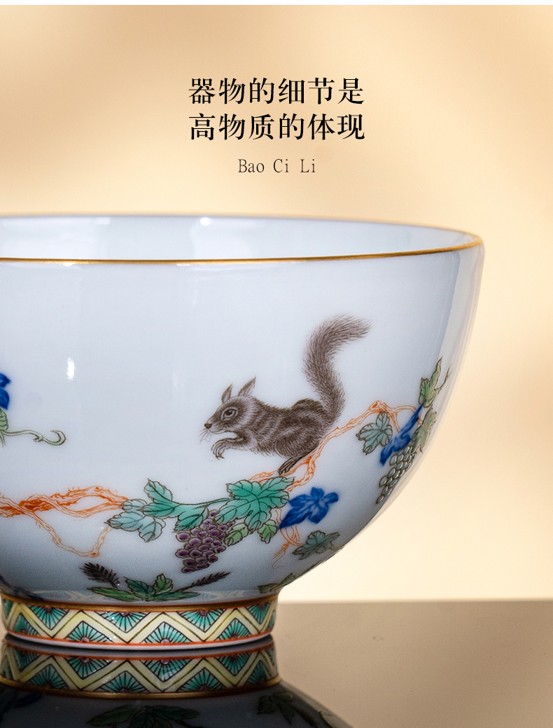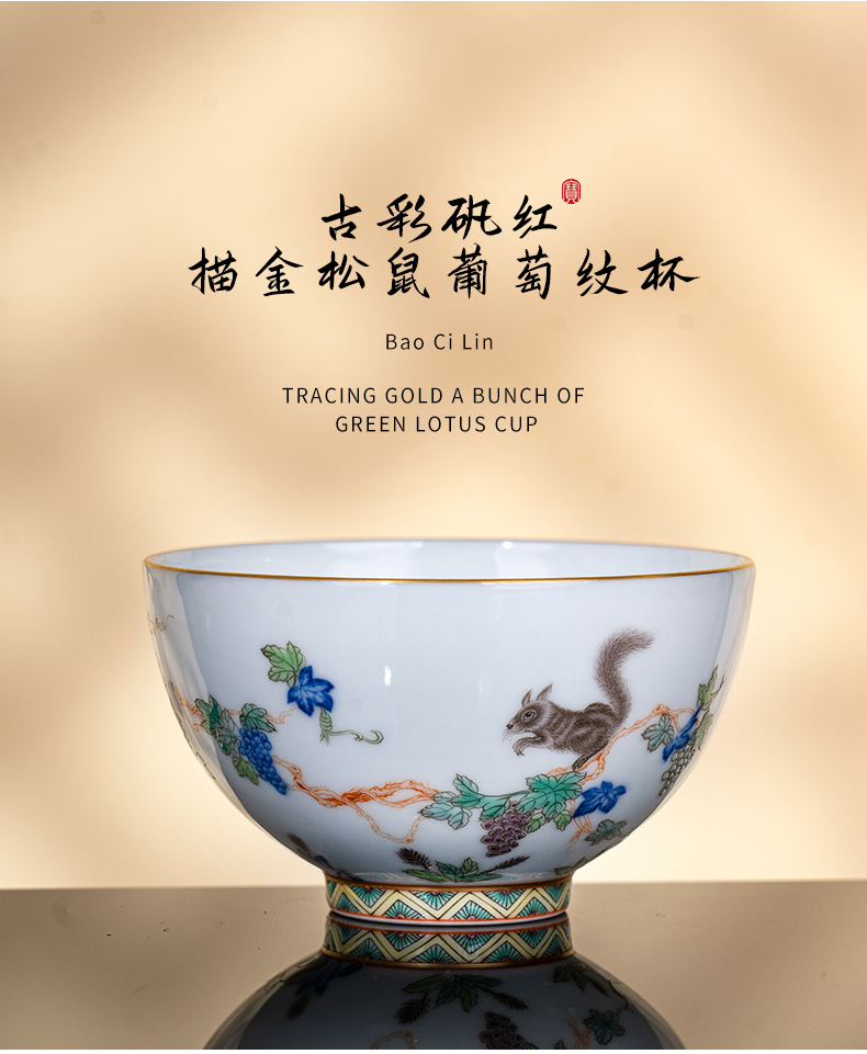 古彩矾红描金松鼠葡萄纹杯 商品图2