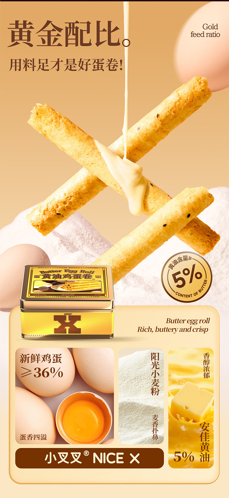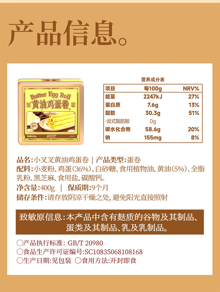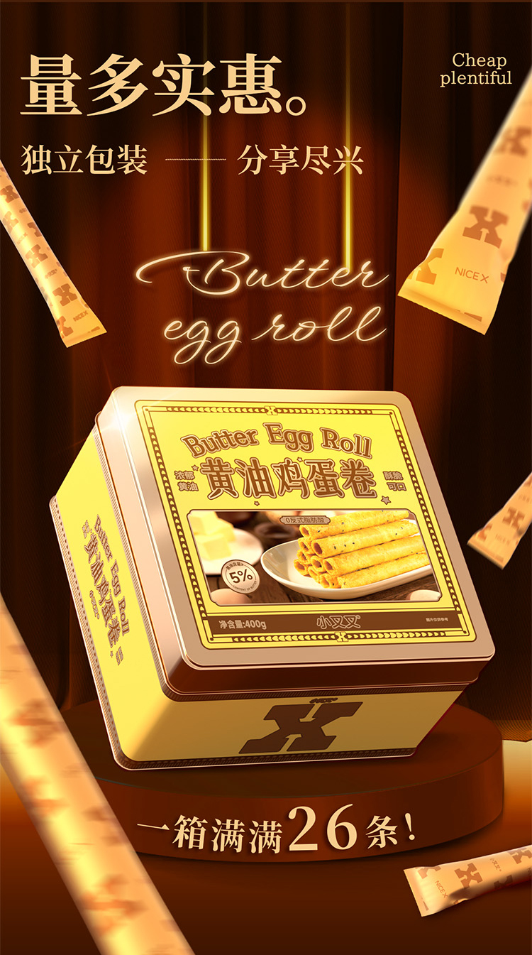 一只小叉叉黄油鸡蛋卷铁盒板400g
