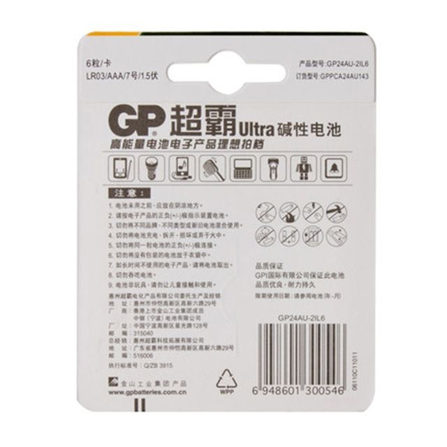 超霸(7号)碱性电池 6粒/卡