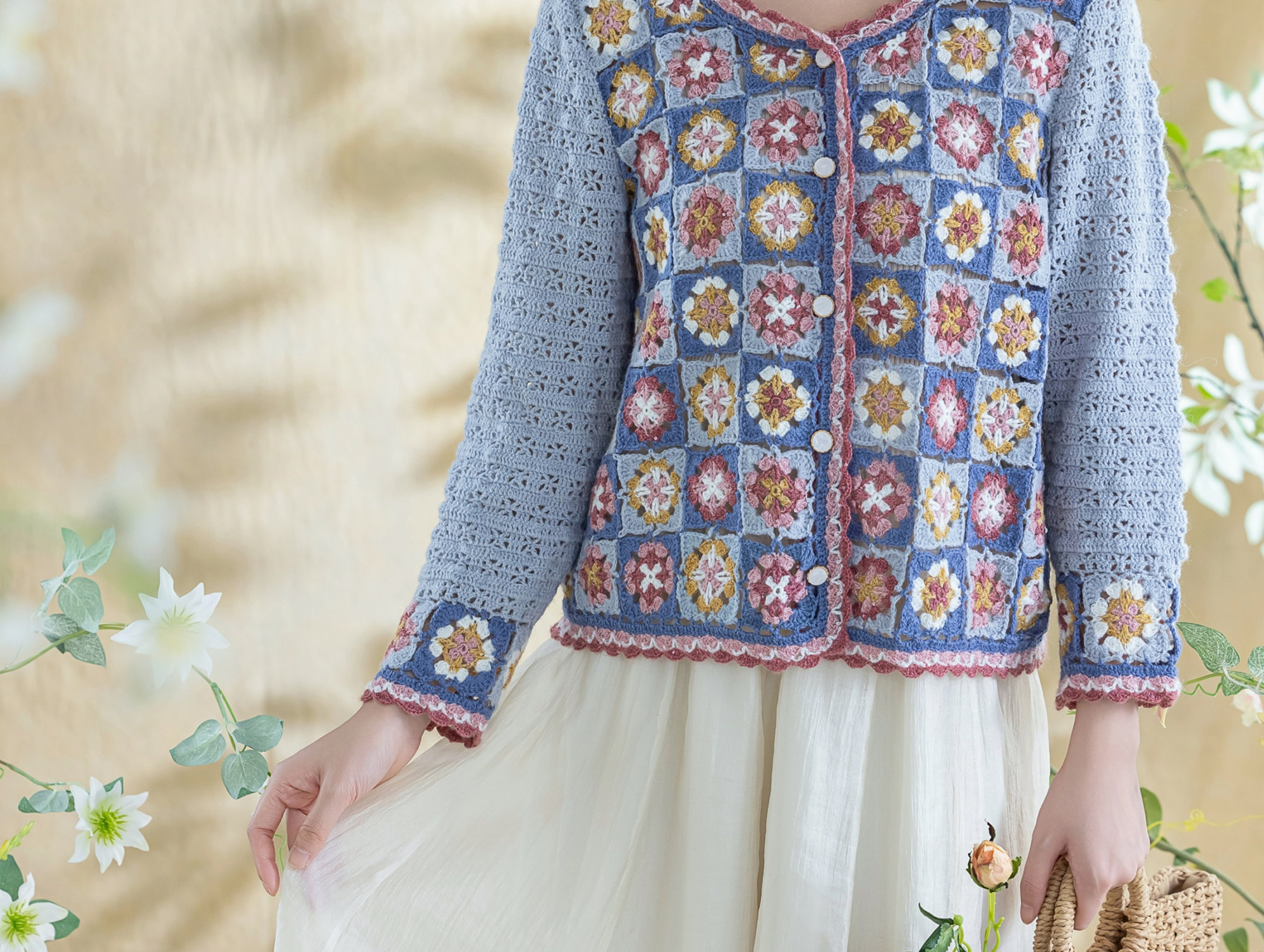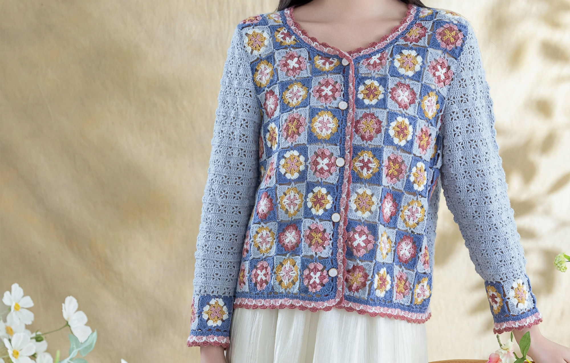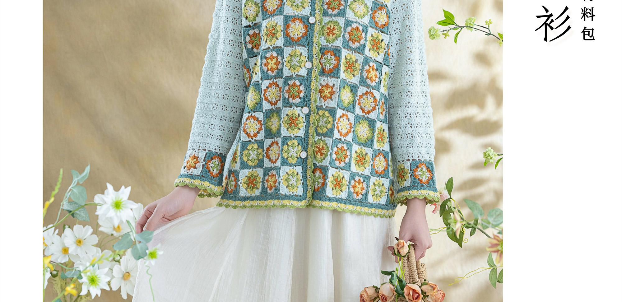 苏苏姐家青简拼花开衫手工diy钩针编织毛线团外套衣服材料包