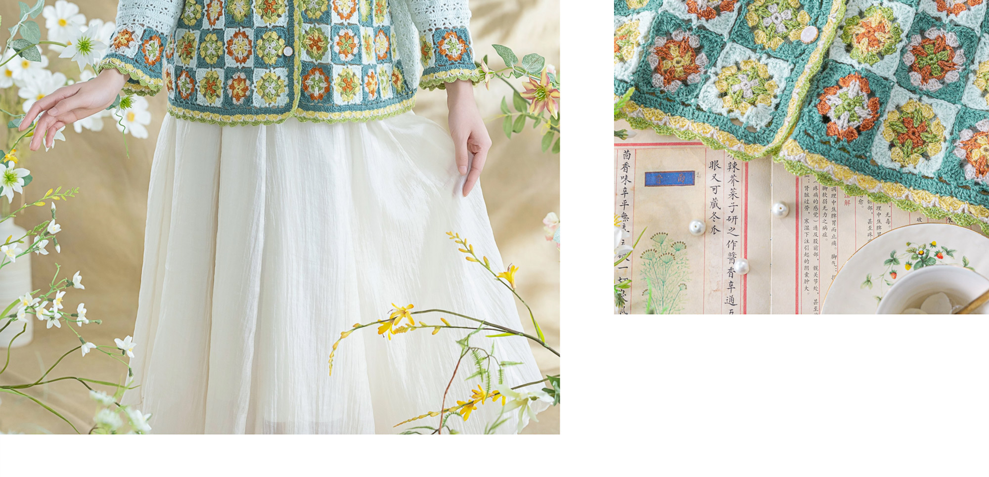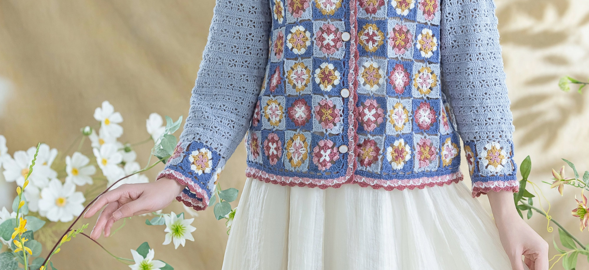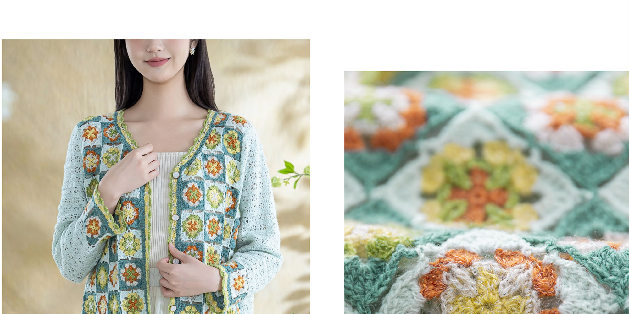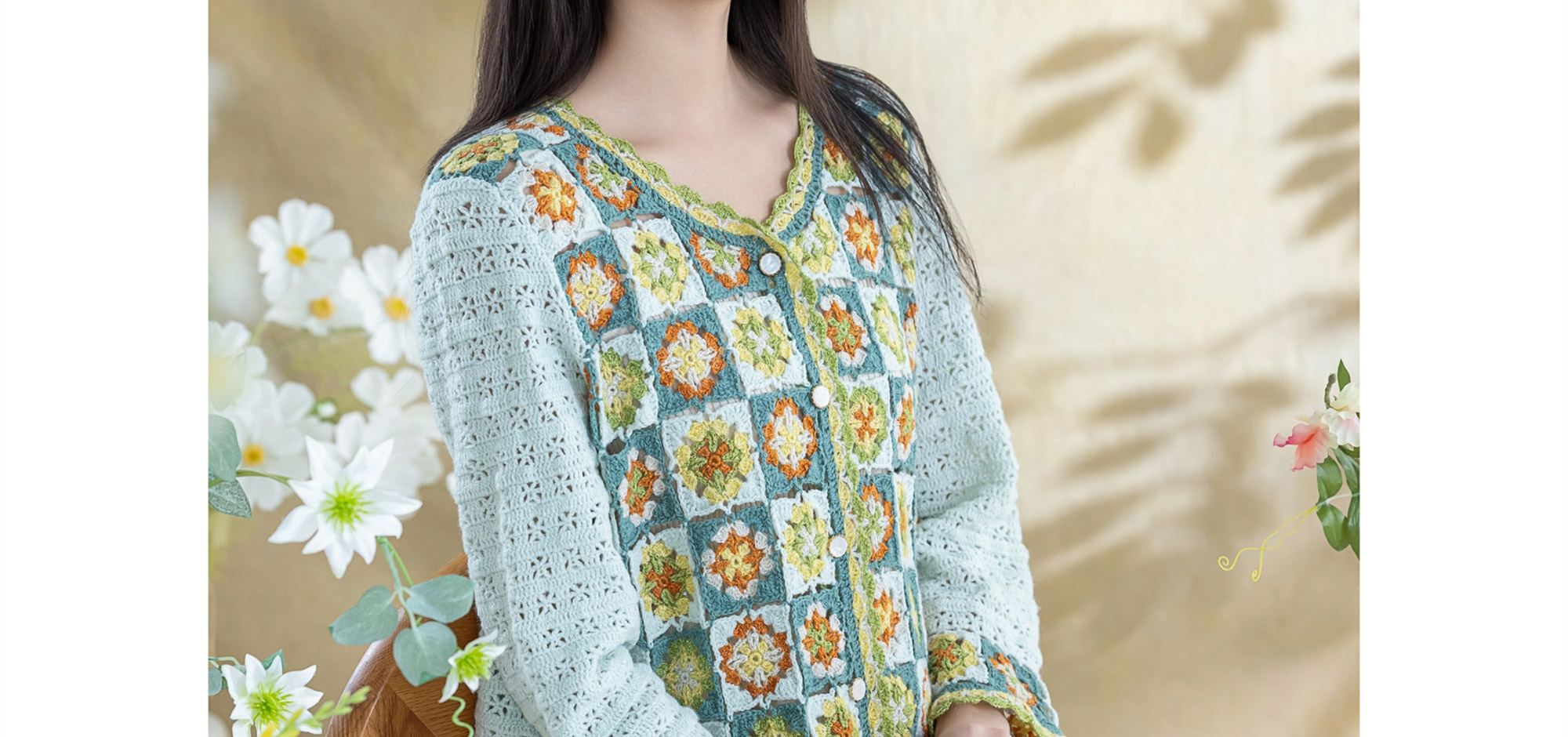 苏苏姐家青简拼花开衫手工diy钩针编织毛线团外套衣服材料包