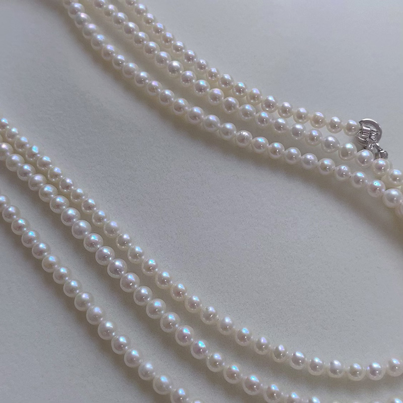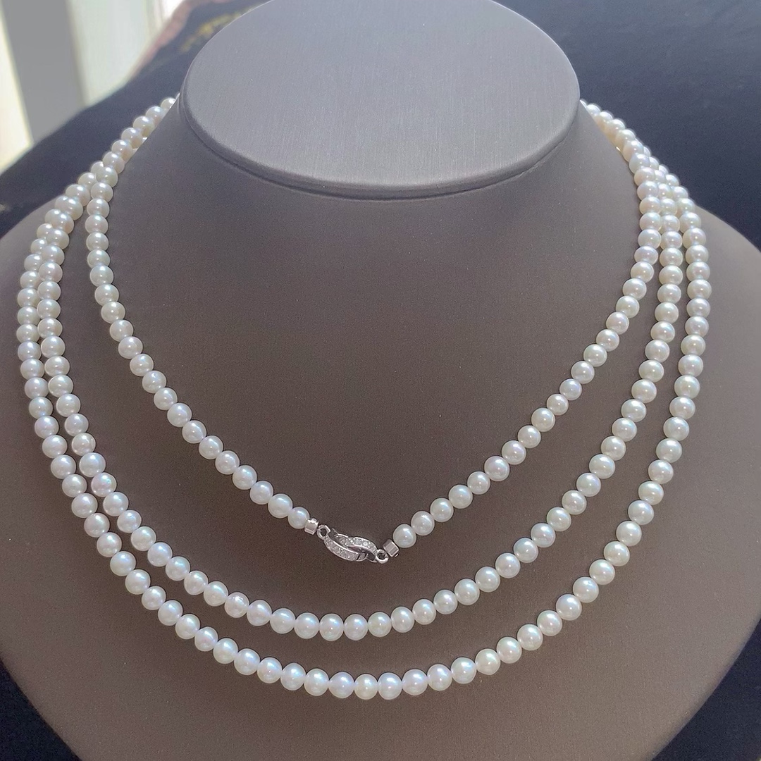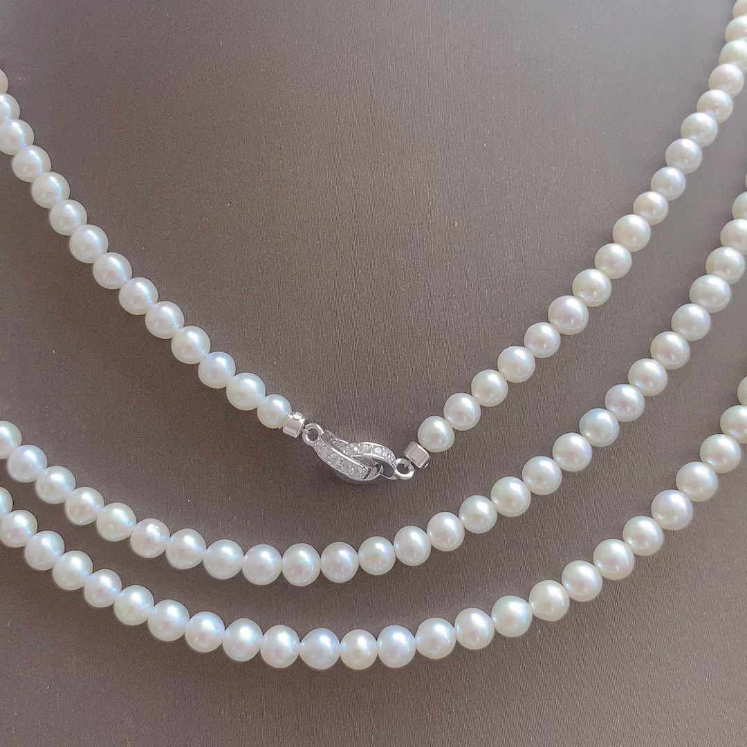 baby珍珠项链毛衣链4.5-5mm天然淡水珍珠,微瑕,近圆,长120cm ,纯银扣