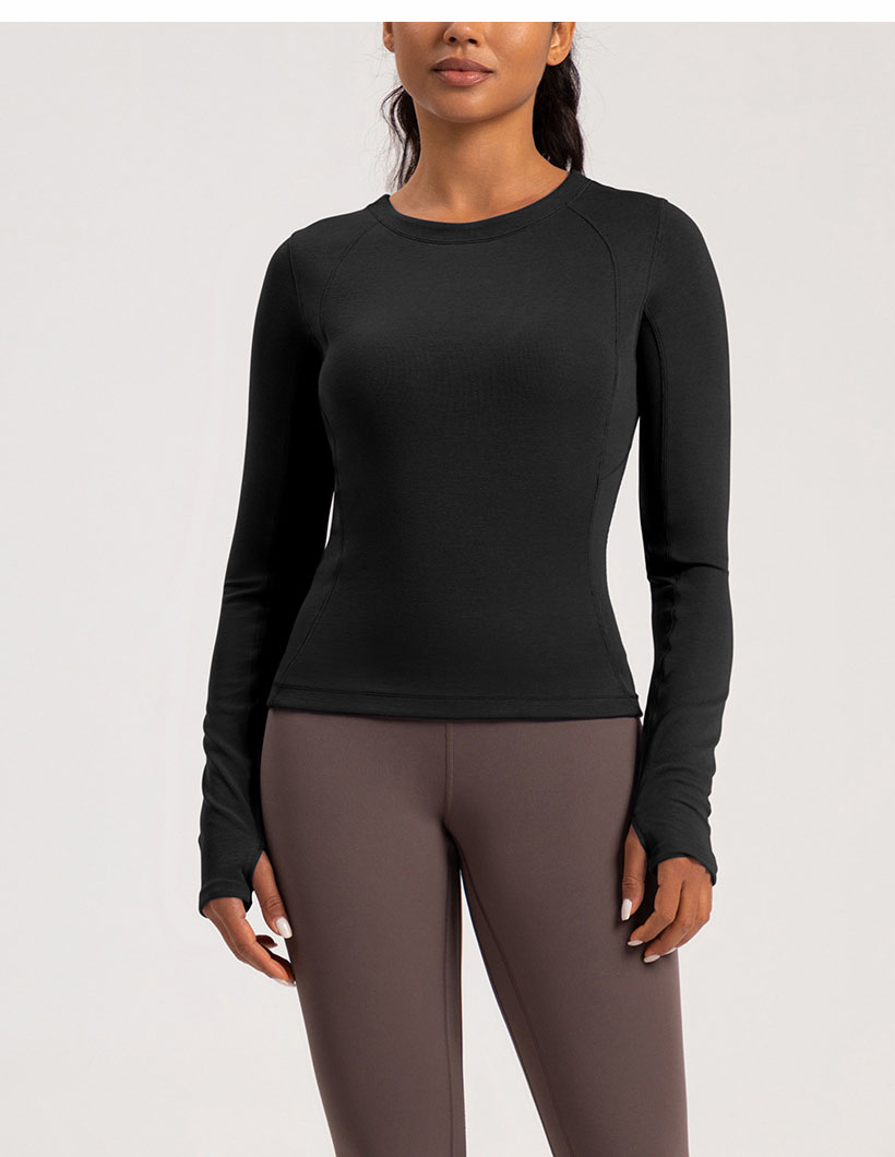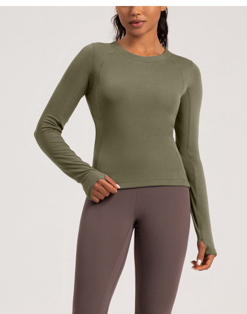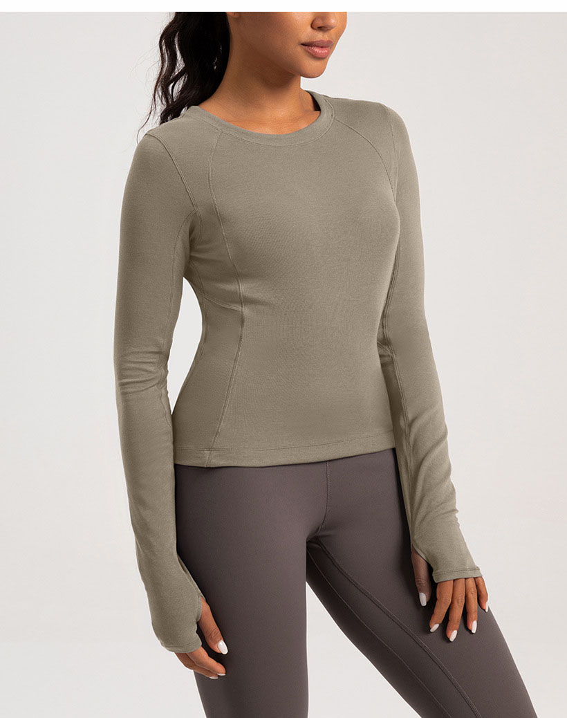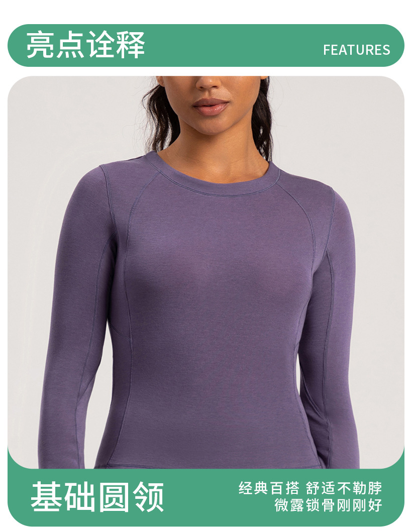跃牌【倚窗听雨】系列 Athena 新款羊毛瑜伽服女美丽诺圆领裸感显瘦长袖T恤CX87