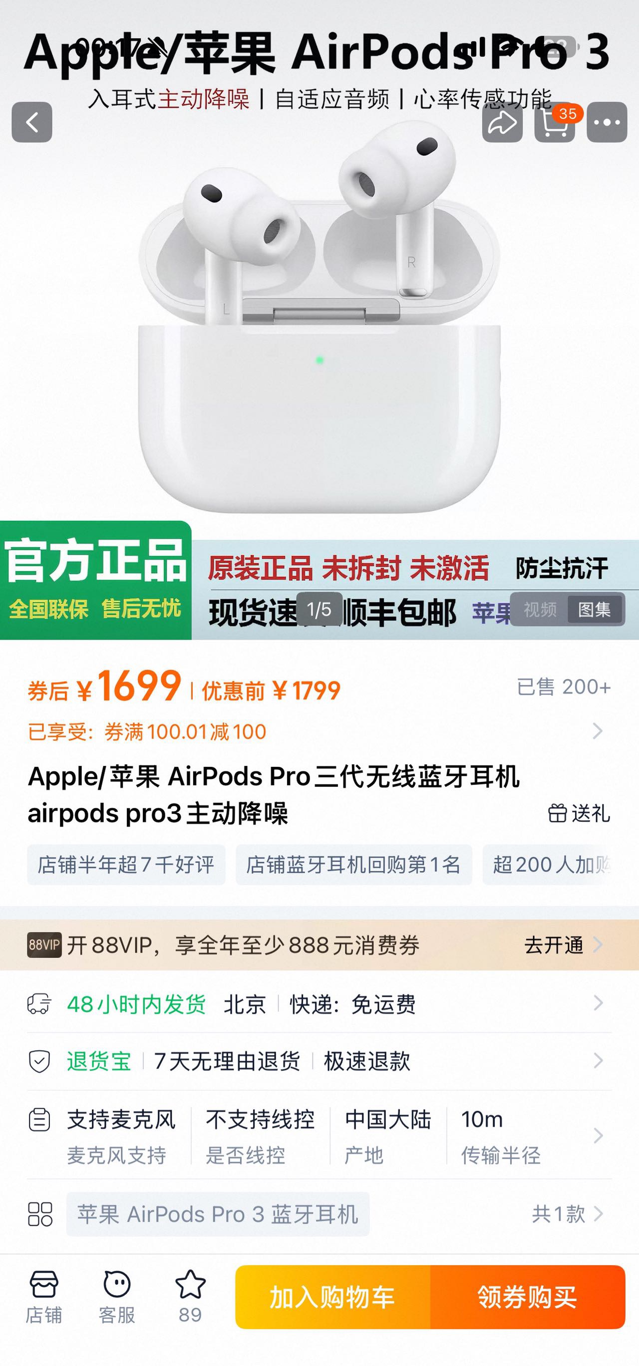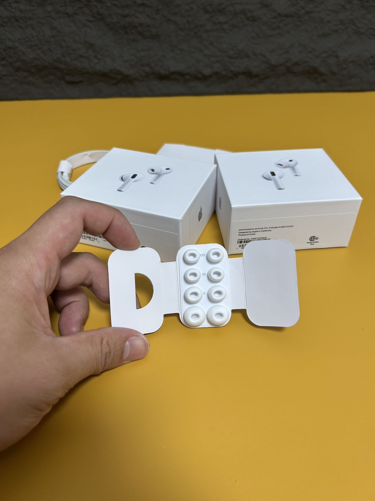 全新 AirPods Pro 3,苹果八代蓝牙耳机,不止进化,更是声觉革命!还是老渠道 出外贸单多出来的,跟国内的版本不一样,。音质各方面细节都级棒!!每对耳机都配有5对尺码不一样的耳塞,XXS-L码!!清澈全景震撼音质,如亲临现场!真的震撼!