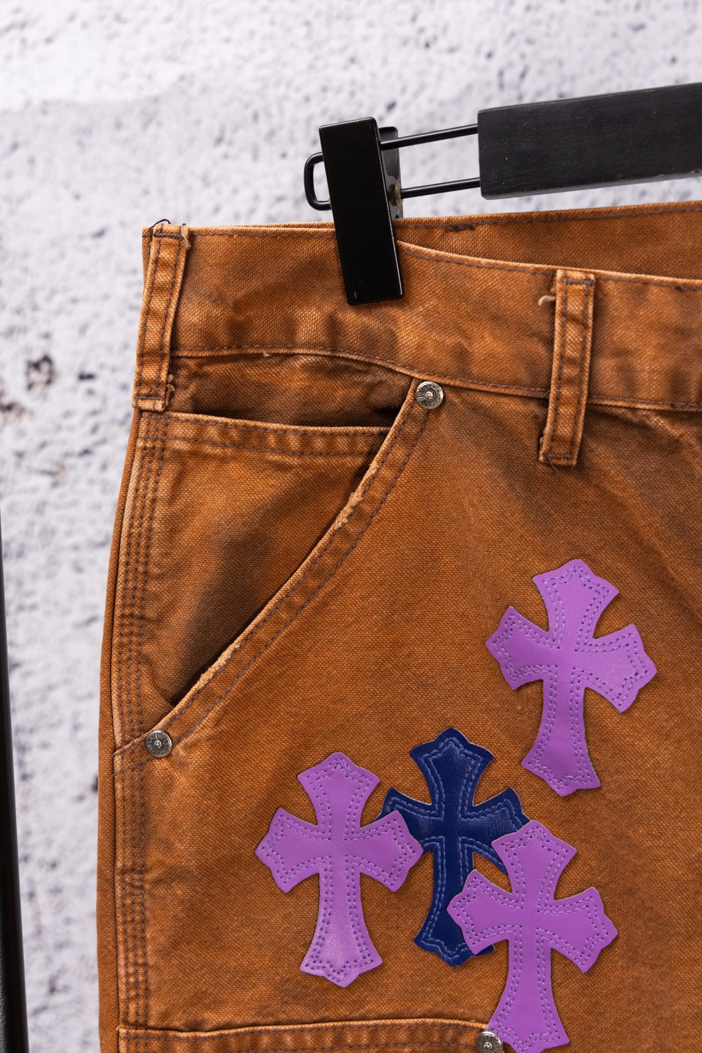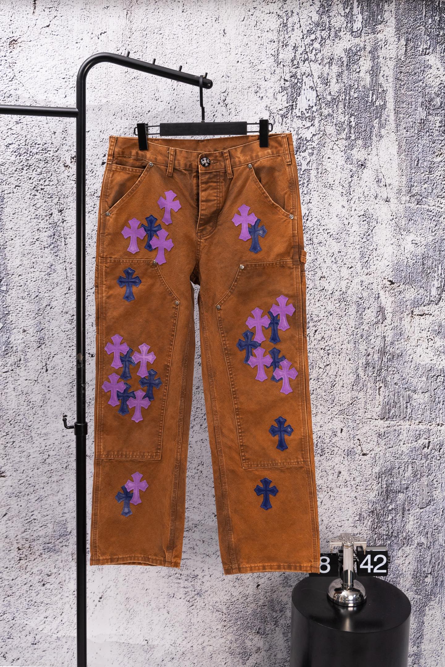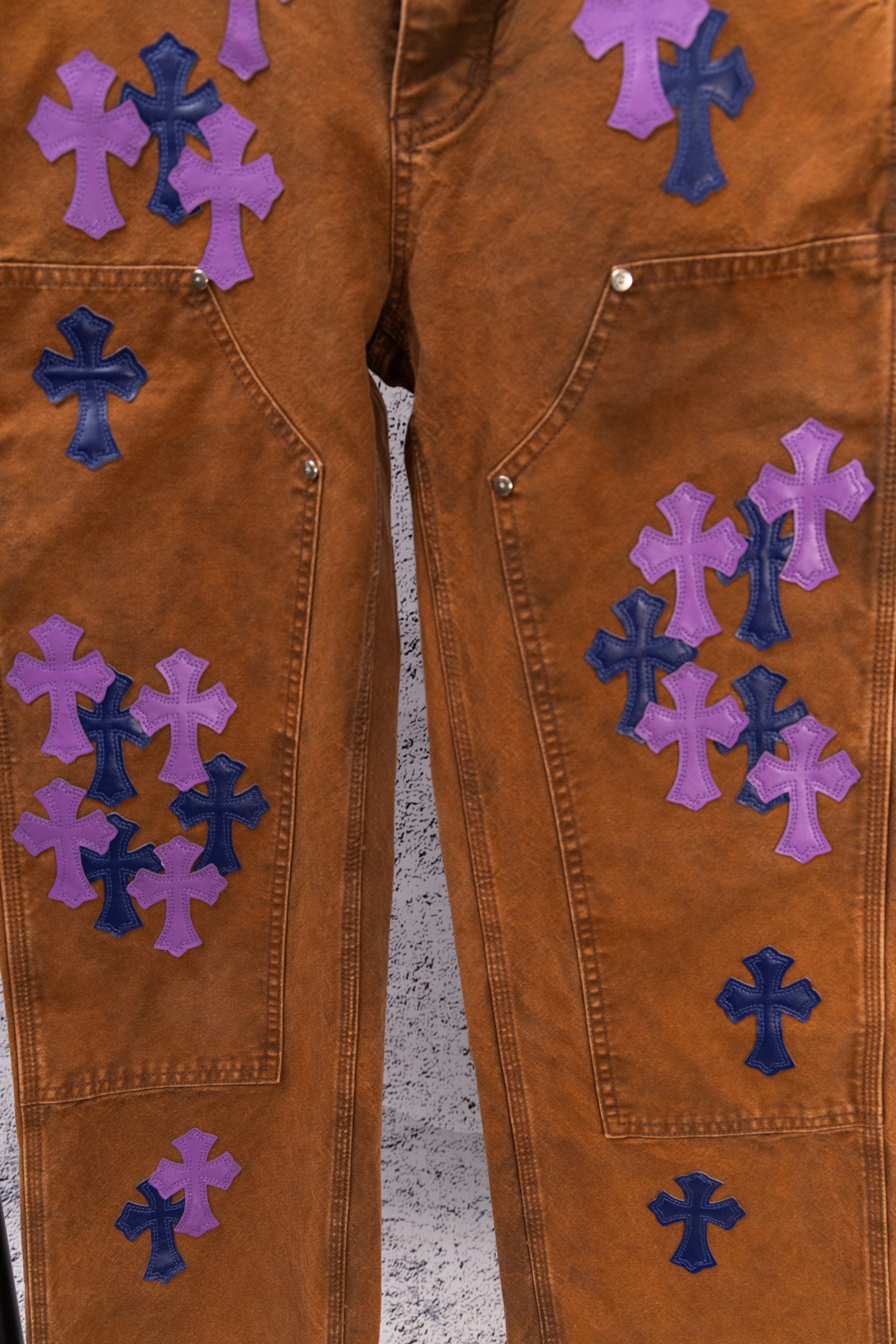 D112556限定牛王蓝紫十字拼皮棕色牛仔裤工装伐木裤
