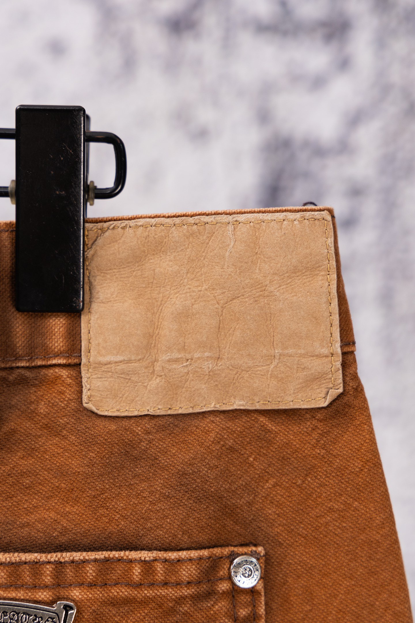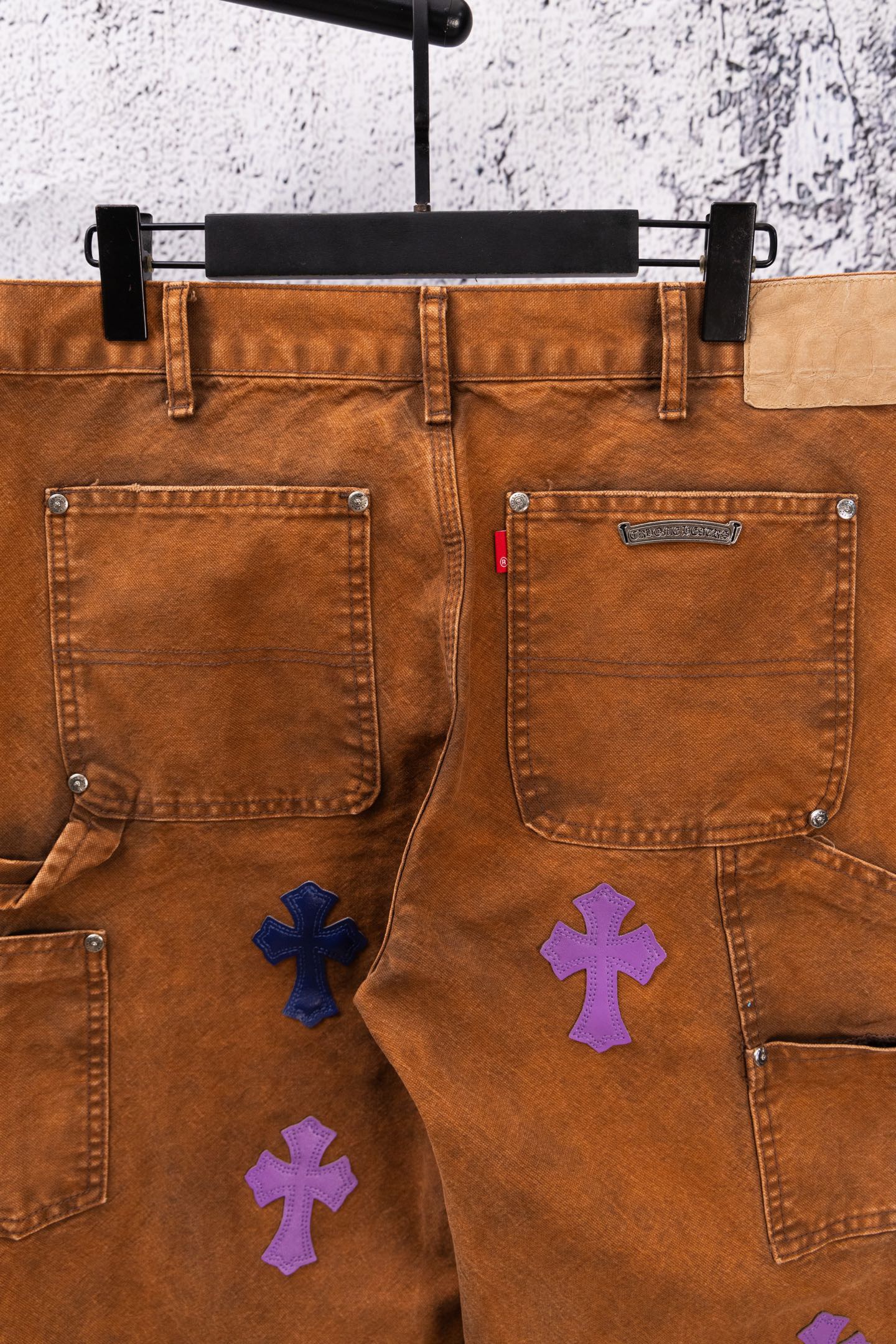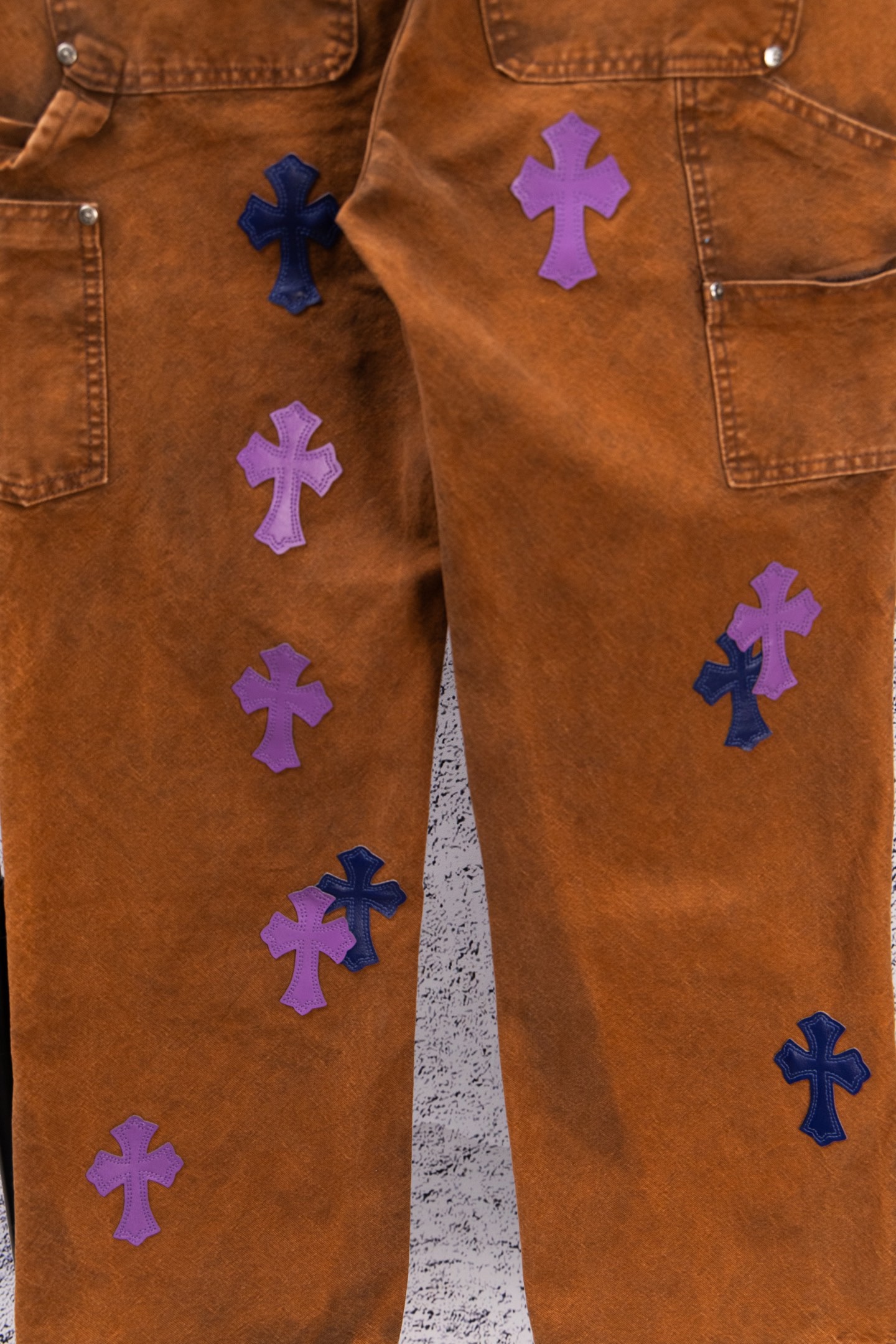 D112556限定牛王蓝紫十字拼皮棕色牛仔裤工装伐木裤