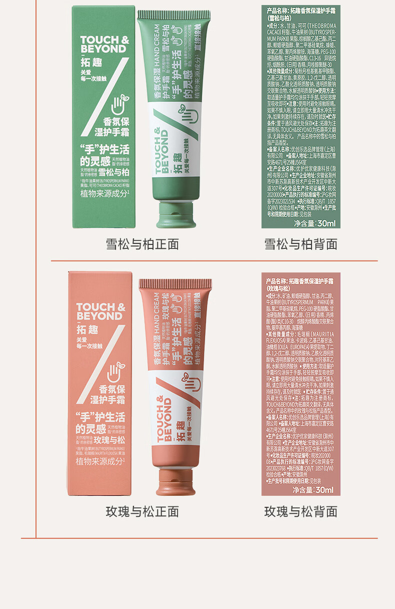 「自用或伴手礼推荐」TOUCH & BEYOND拓趣 · 香氛护手霜礼盒4支装(白檀30ml苦橙30ml玫瑰30ml雪松30ml)|品牌直发
