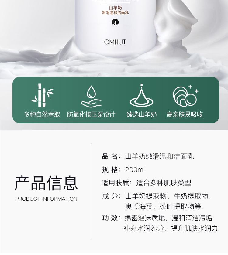 【美妆个护】QMHUT/泉美小屋山羊奶洗面奶 氨基酸温和清洁保湿控油 泡沫洁面乳