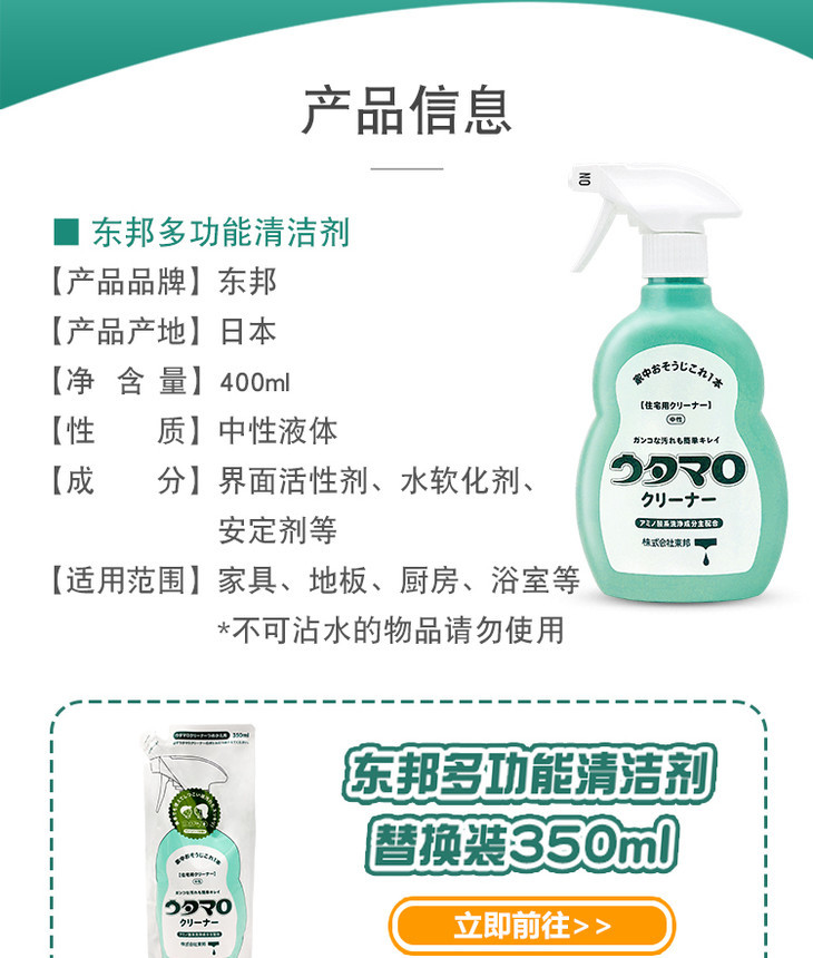 日本utamaro东邦 · 多功能用途清洁剂400ml 家用厨房浴室喷雾气泡(中性护手)|品牌直发