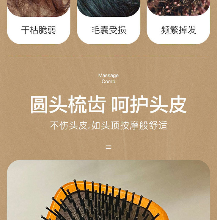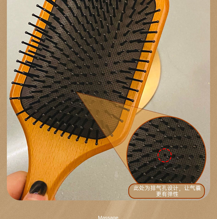 【日用百货】-气垫梳实木气囊梳榉木禾木美发蓬松排骨美发木梳