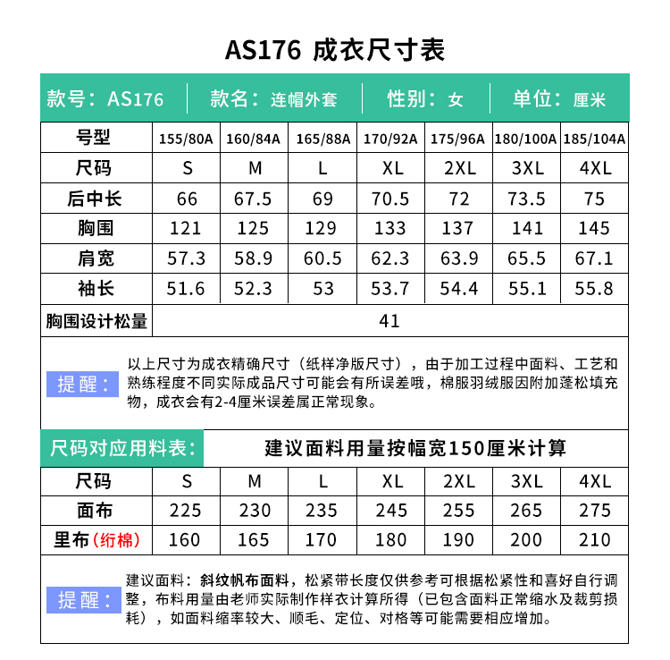 裁缝学苑AS176新款加厚加棉复古连帽上衣外套纸样女装版型裁剪图纸