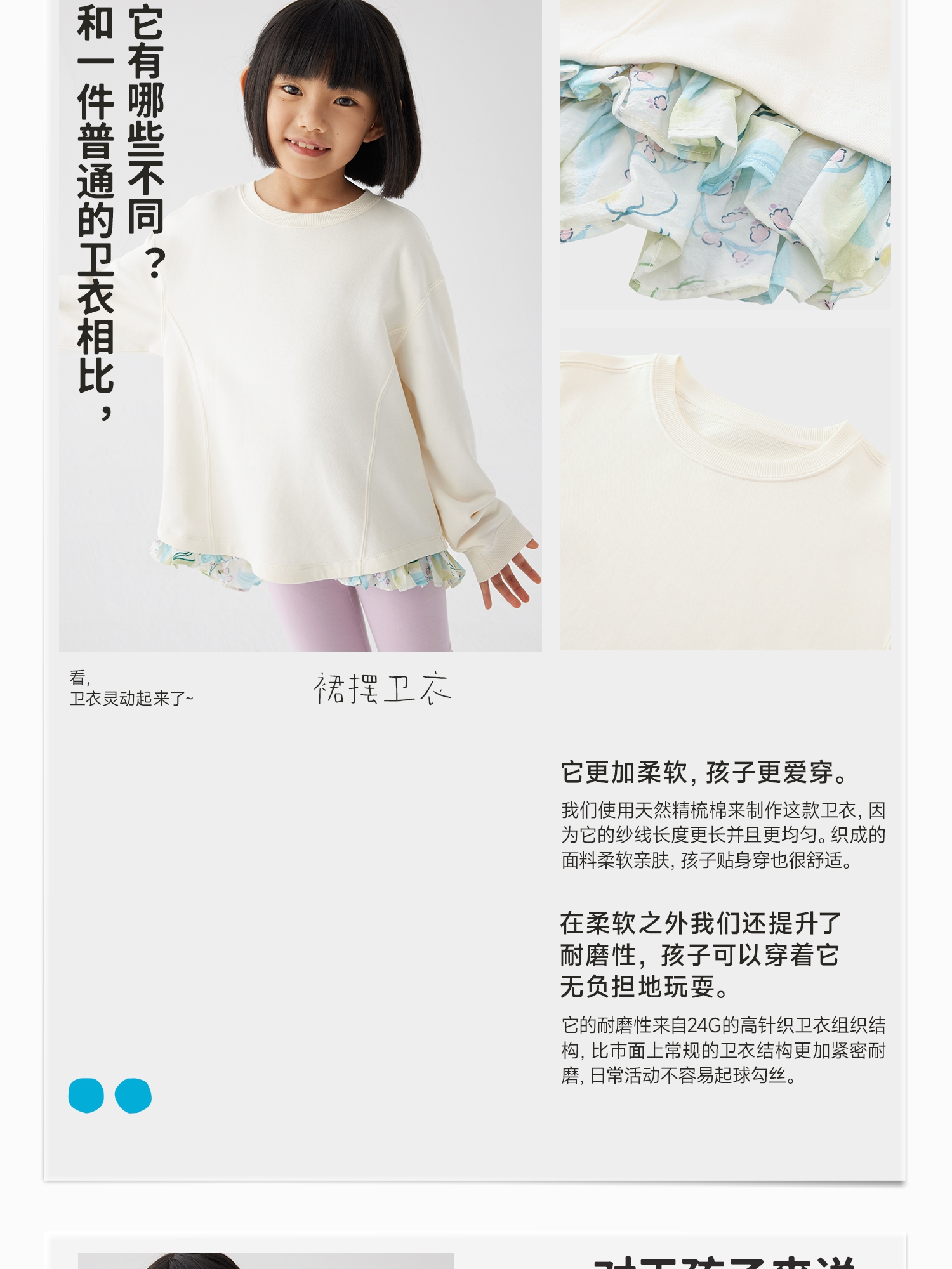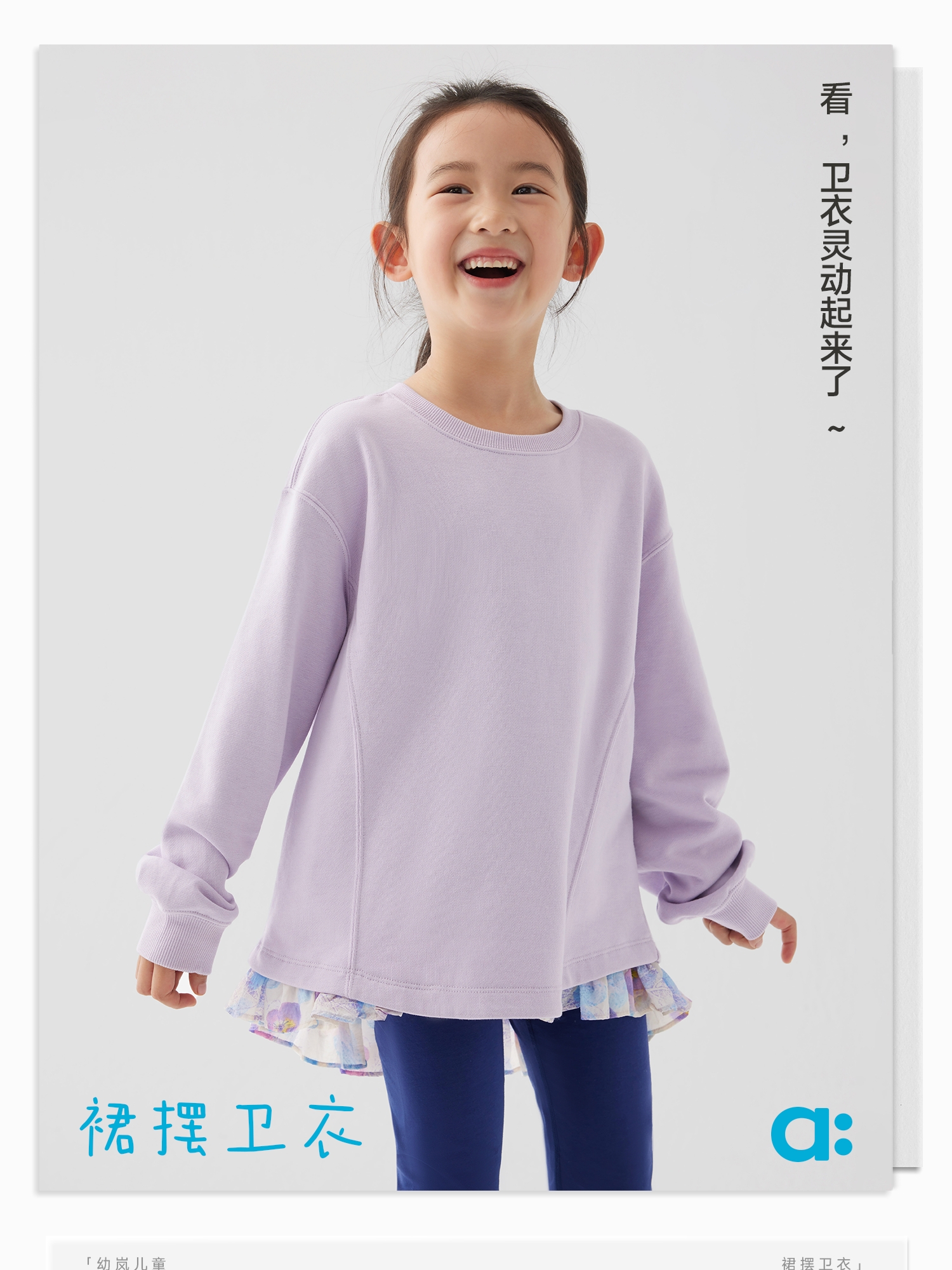 【春Vol.1】幼岚舒适百搭灵动飘逸裙摆卫衣24春季新款儿童女童柔软小A摆卫衣ZY