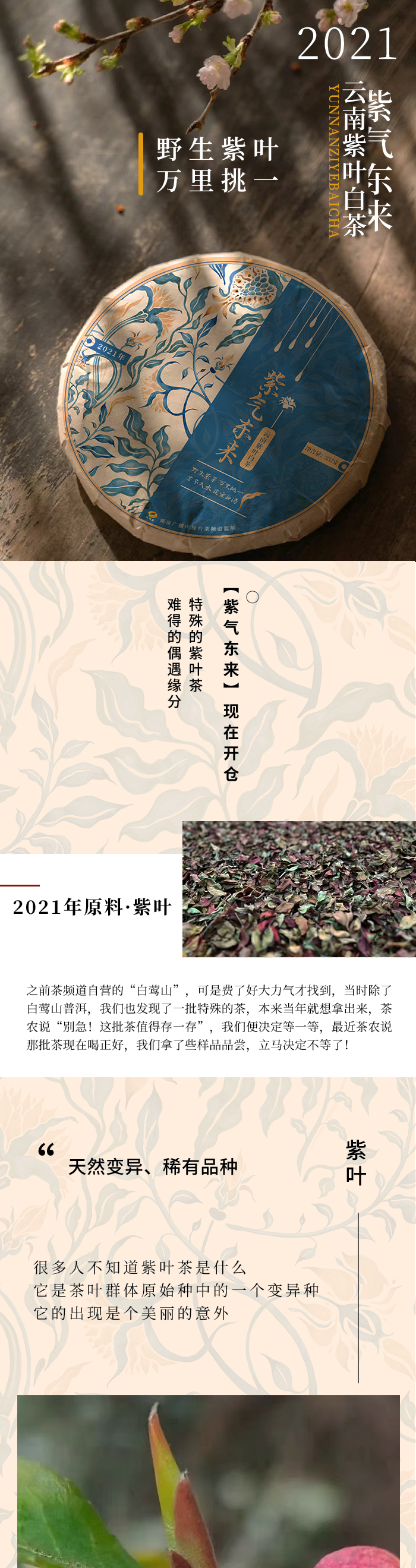 茶频道自营 紫气东来 2021年云南野生紫叶白茶 野花香 蜂蜜甜 白莺山 357g/饼