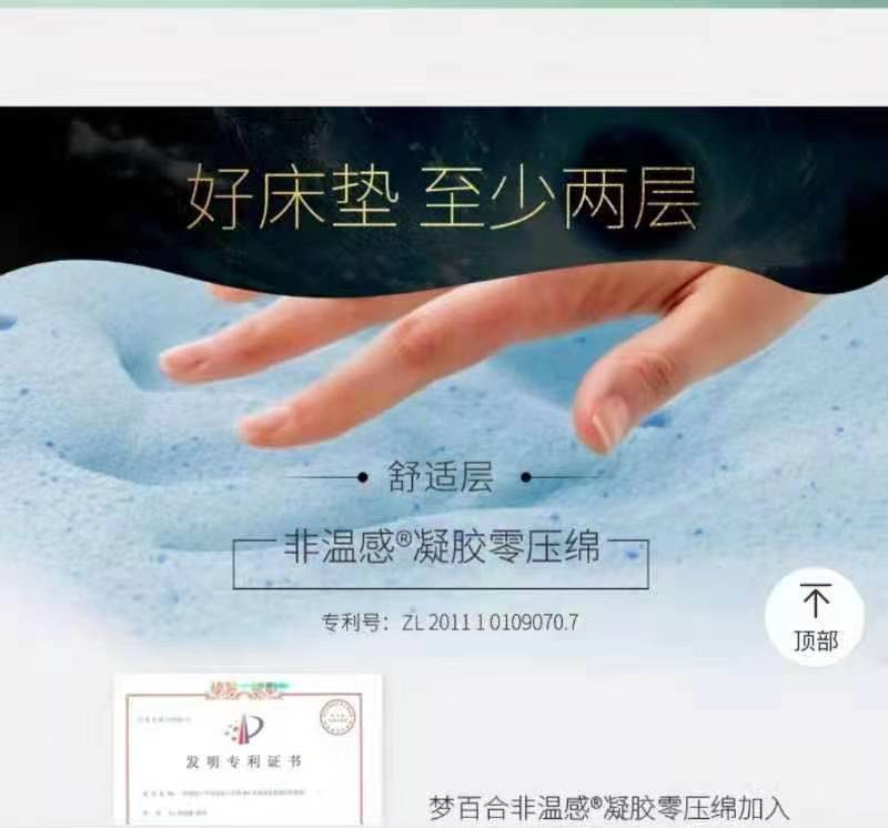 10楼 梦百合 传奇7号0压薄垫5公分( 90*200/150*200/180*200*5CM) 吊牌价1499/2499/3199元 活动价1199/1999/2559元
