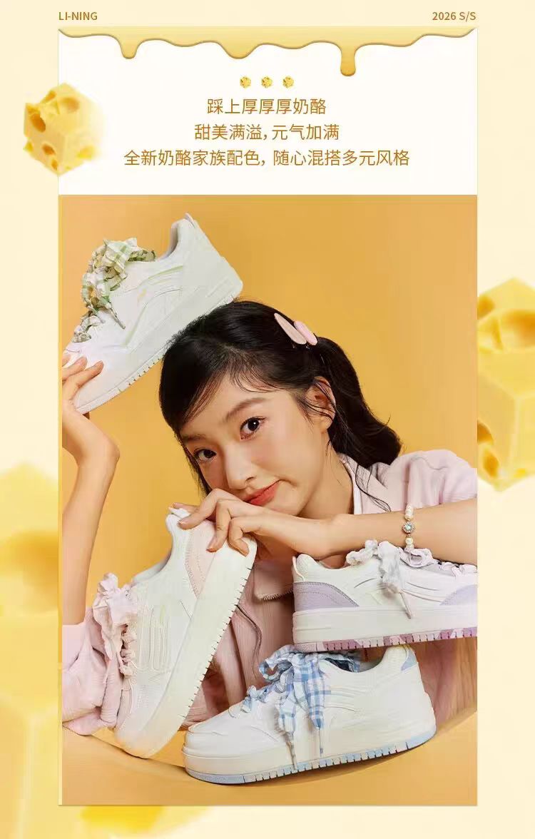 李宁奶酪板鞋女厚底2026春季新款舒适百搭潮流经典休闲鞋AGCW076 DS