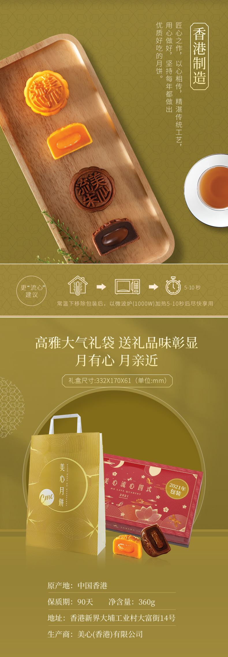中国香港美心流心四式月饼礼盒360g流沙中秋港式糕点零食