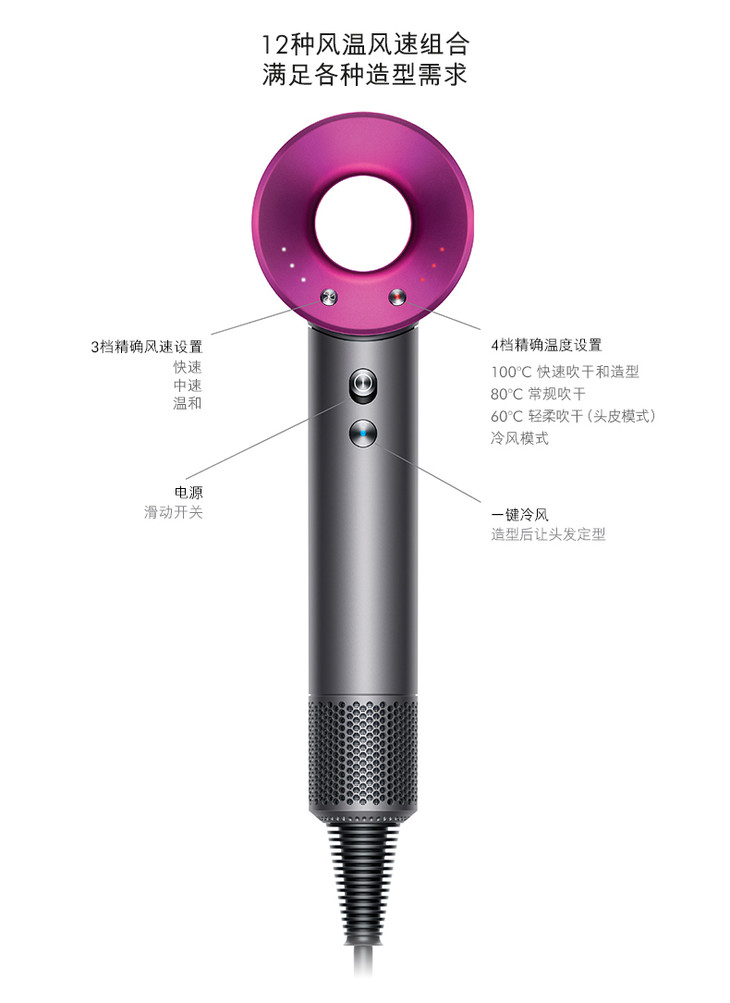 Dyson戴森 吹风机 Supersonic HD01 紫红