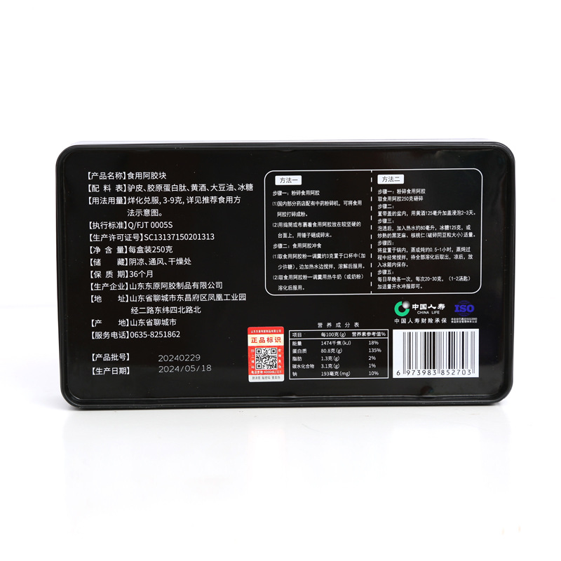 【阿胶块,传承百年,滋养佳品,东阿阿胶】食用阿胶块 特产阿胶胶片 山东驴皮气血 正宗原料250g礼盒装-QQ