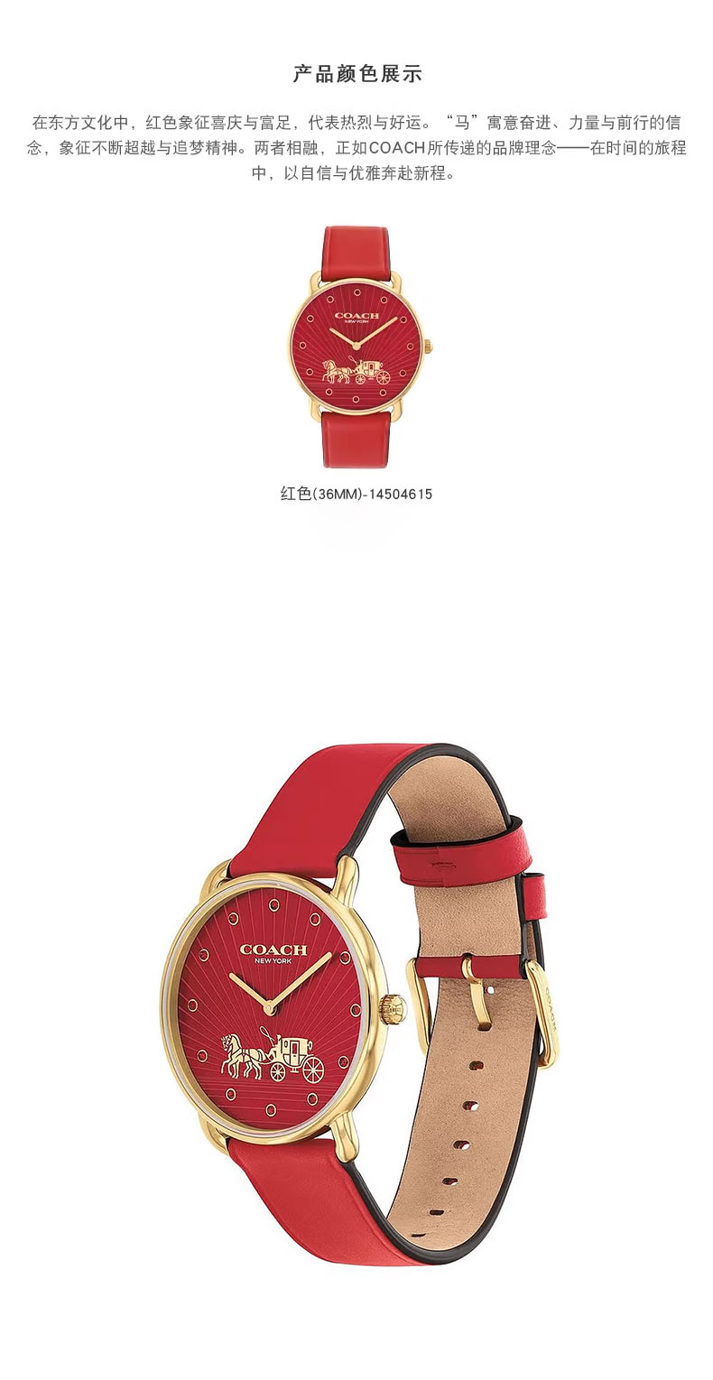 【下单赠香奈儿邂逅香水7.5ml*1】COACH/蔻驰ELLIOT系列马年限定款生肖石英手表 (送礼盒礼袋)