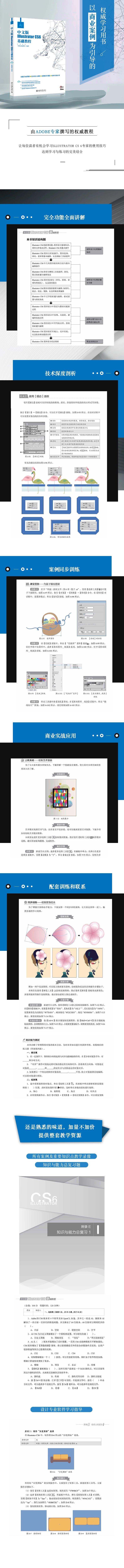 全书内容安排由浅入深,语言写作通俗易懂,实例题材丰富多样,对每个操作步骤的介绍都清晰准确,特别适合作为广大职业院校及计算机培训学校相关专业的教材用书;同时也可以作为广大Illustrator初学者、设计爱好者的学习参考书。