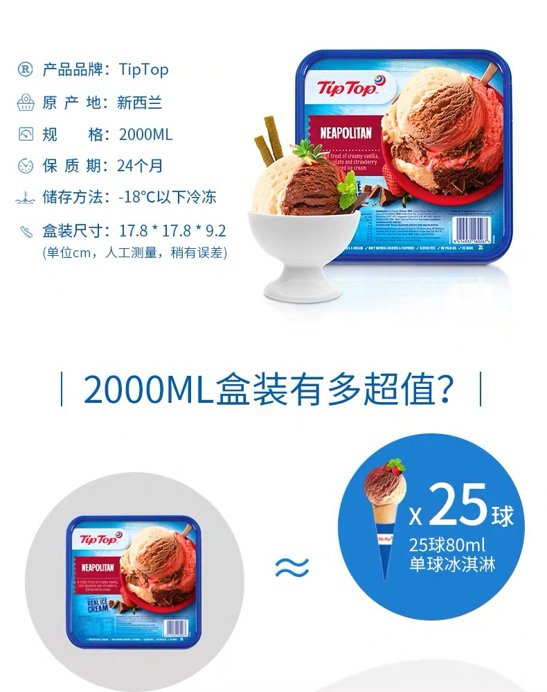 下单请仔细阅读!目前包邮区 域的口味,每天会有变动!盒子尺寸大约是17.8*17.8*9.2 cm哦,一盒是2L装的,重量约1080g哦,大约可以挖20-25个冰淇淋球的呢