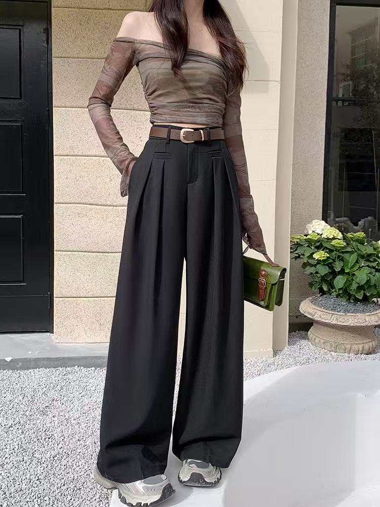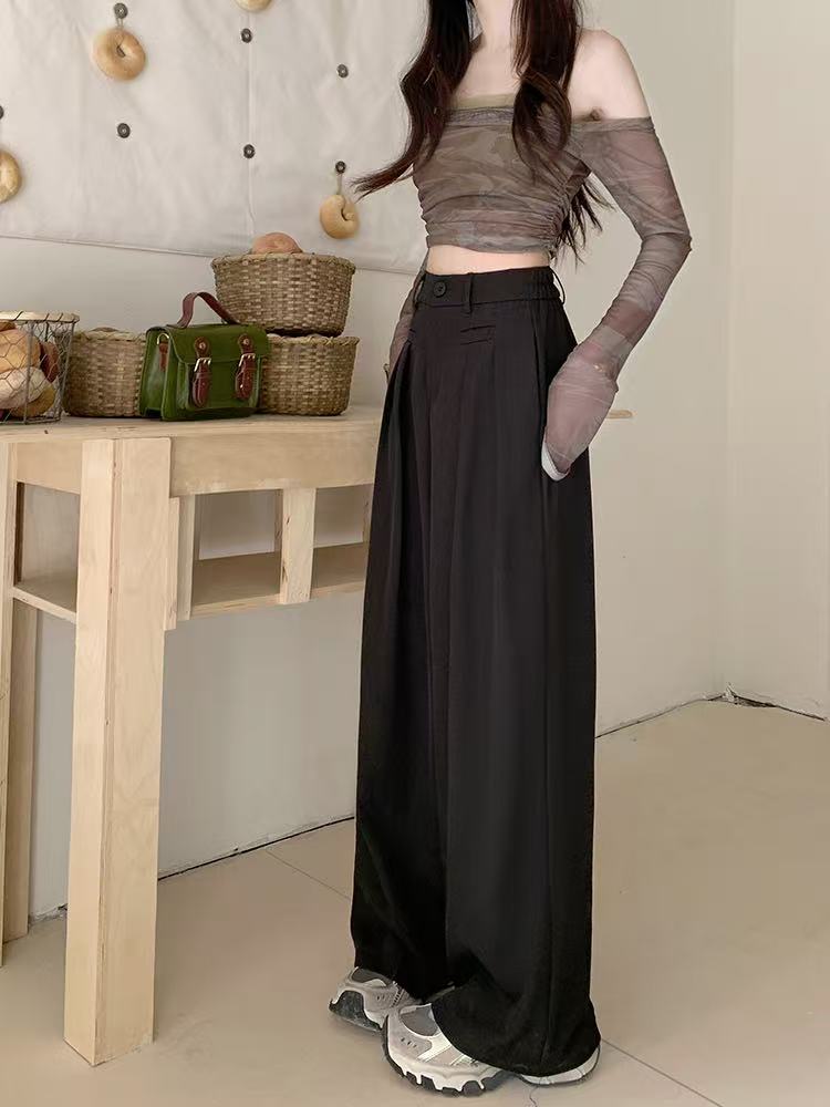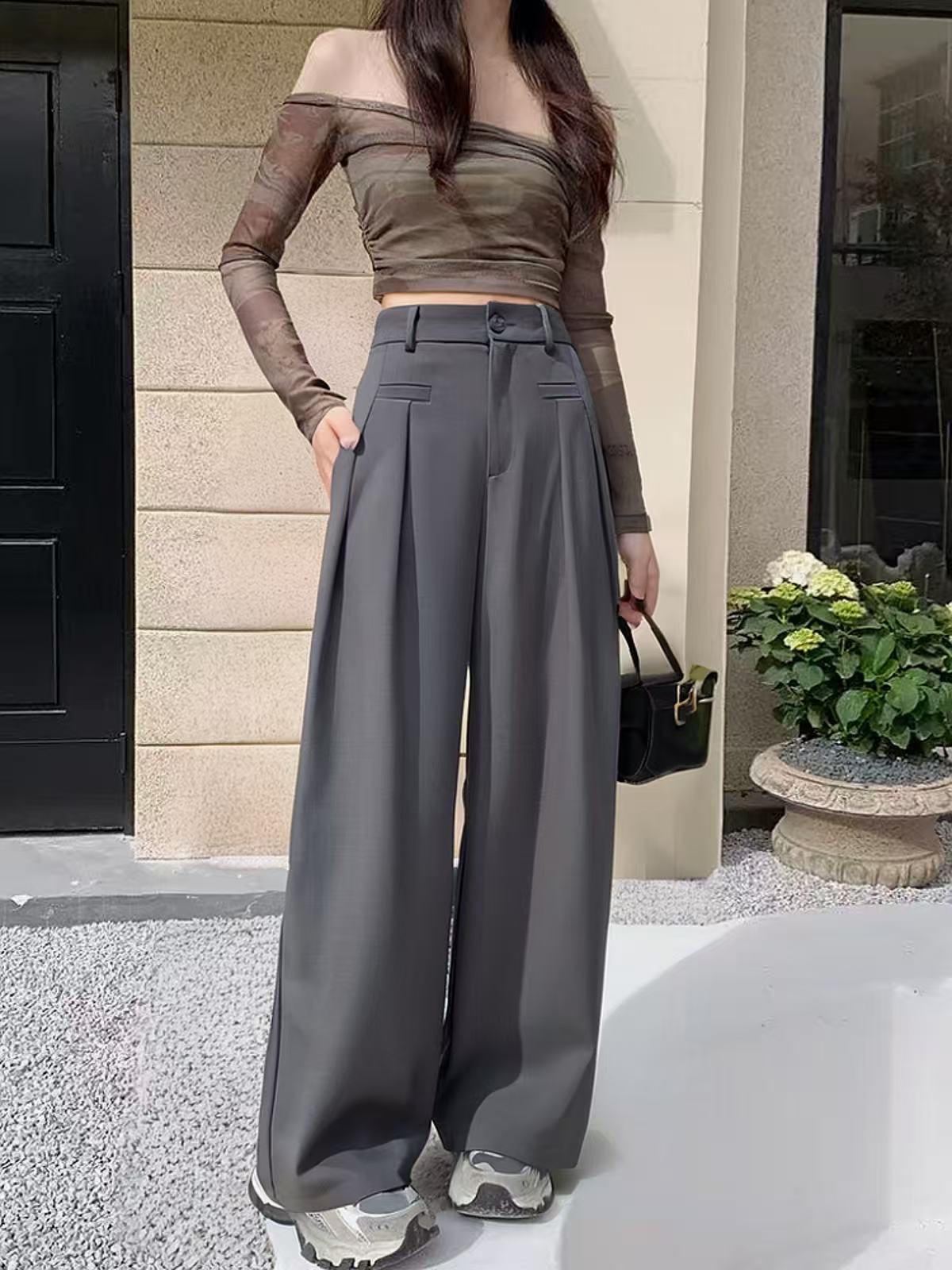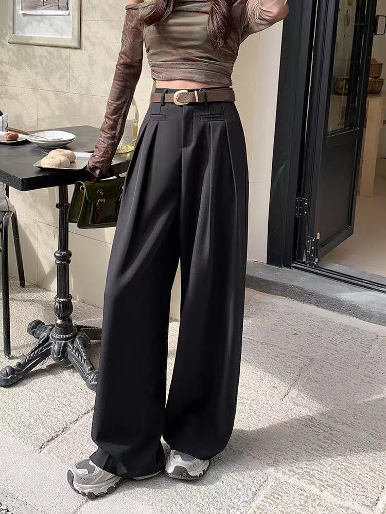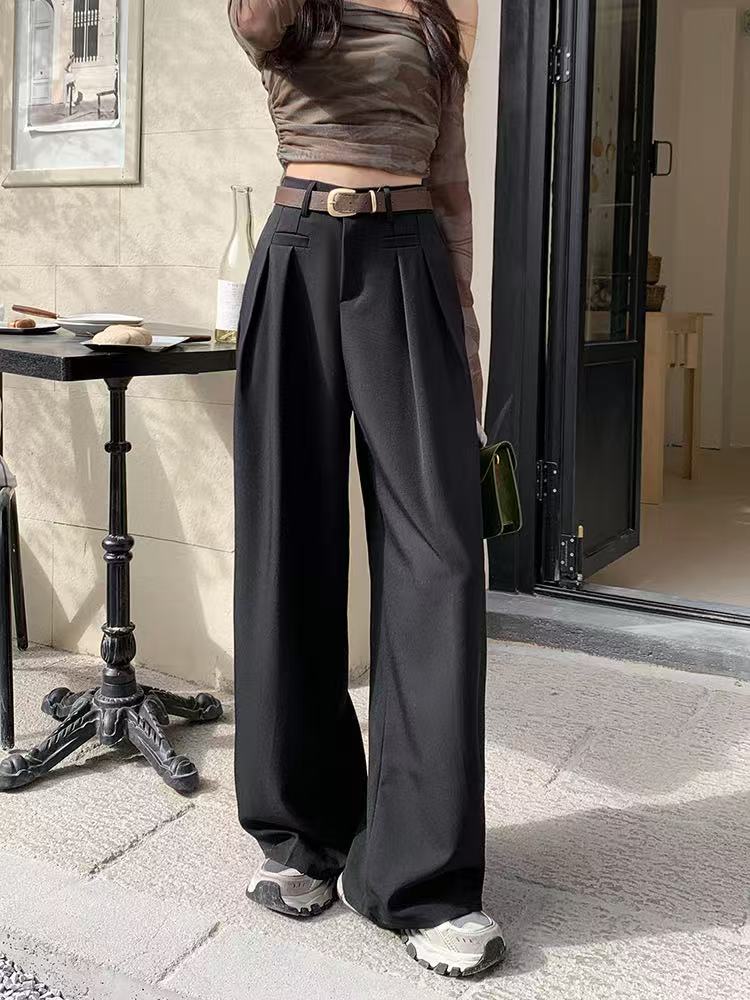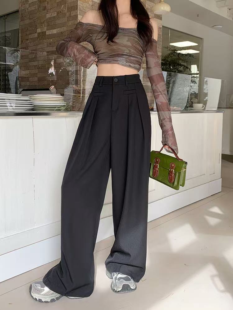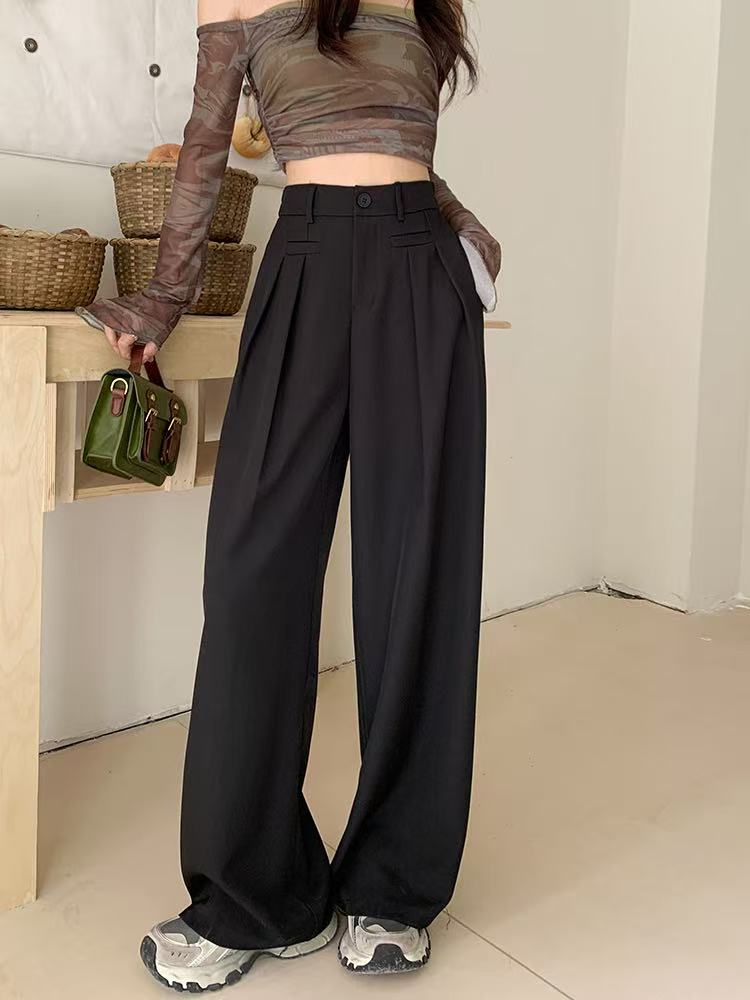 418感恩价【春上新】高级感西装阔腿裤春季宽松显瘦休闲拖地裤5808-喜出