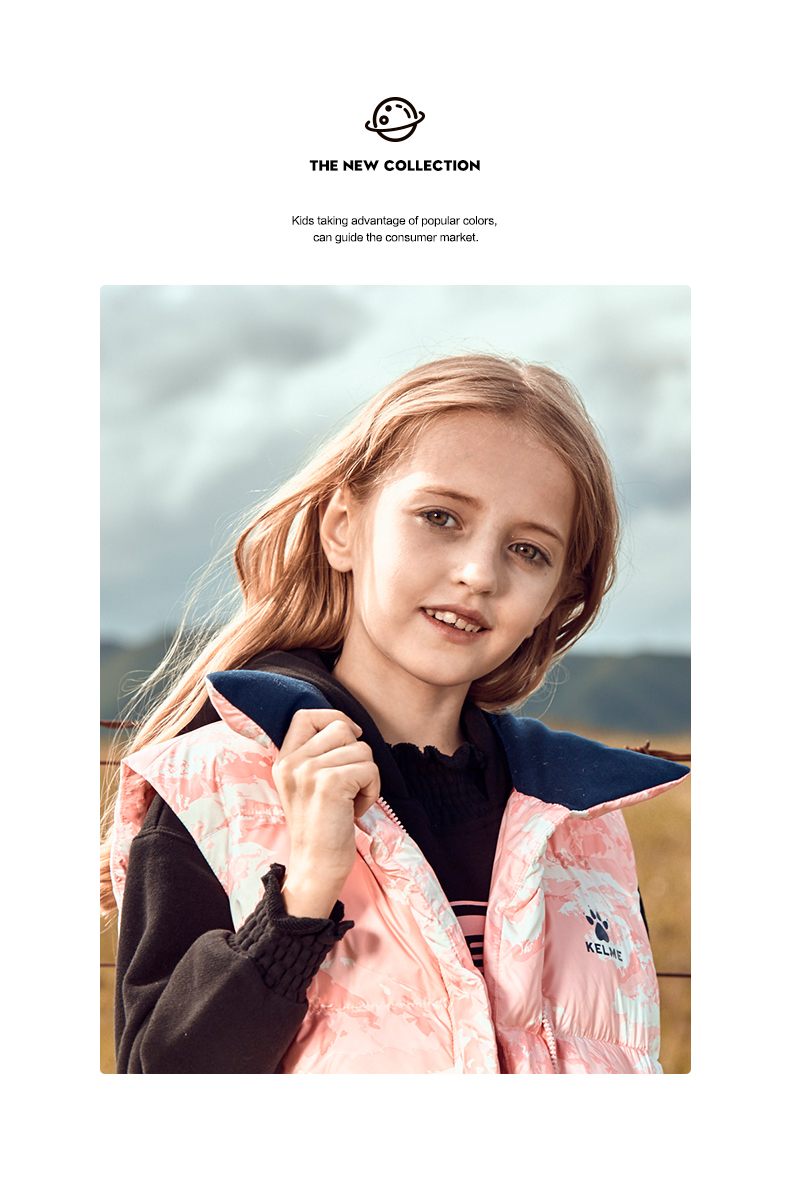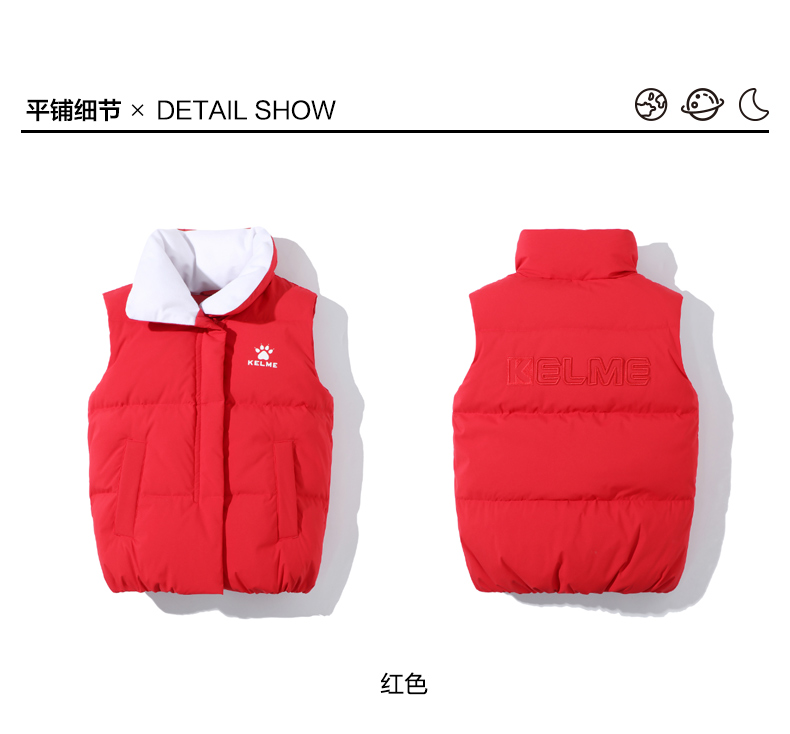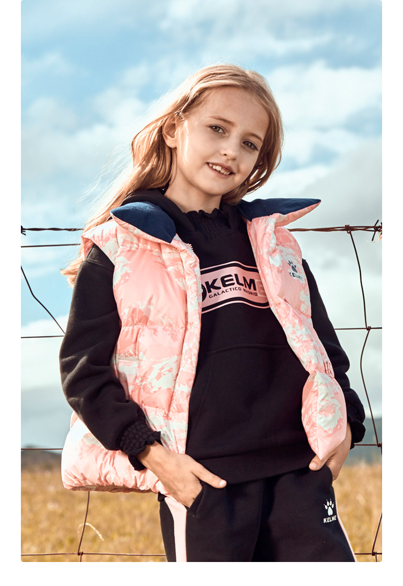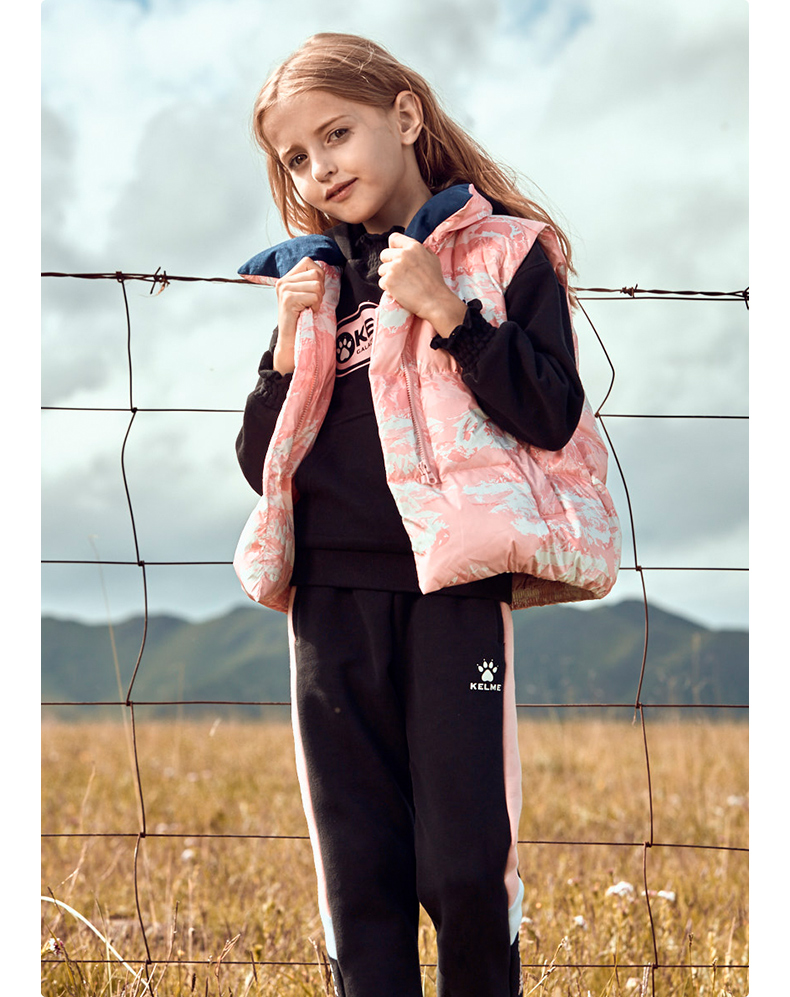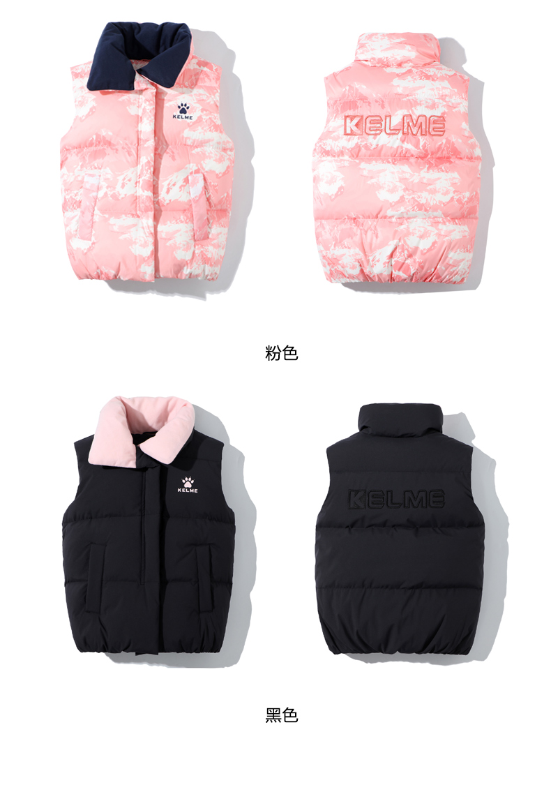 kelme(kids)儿童羽绒马甲舒适保暖女童双面穿羽绒背心