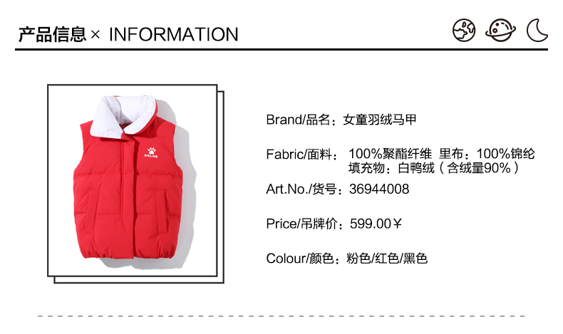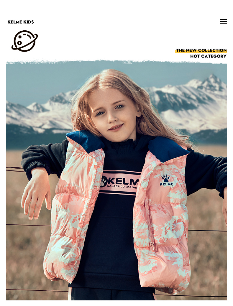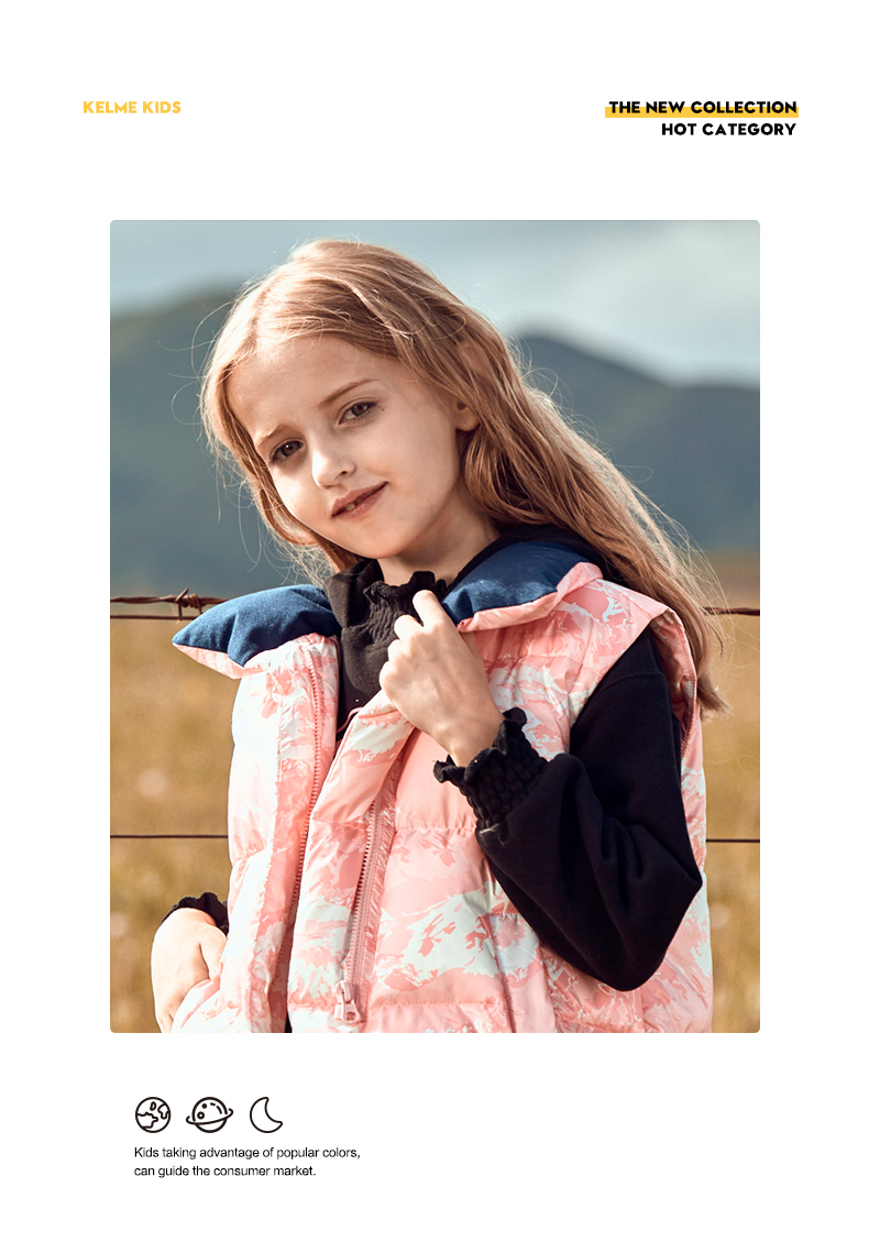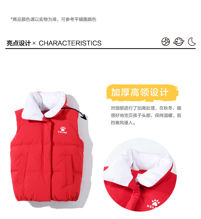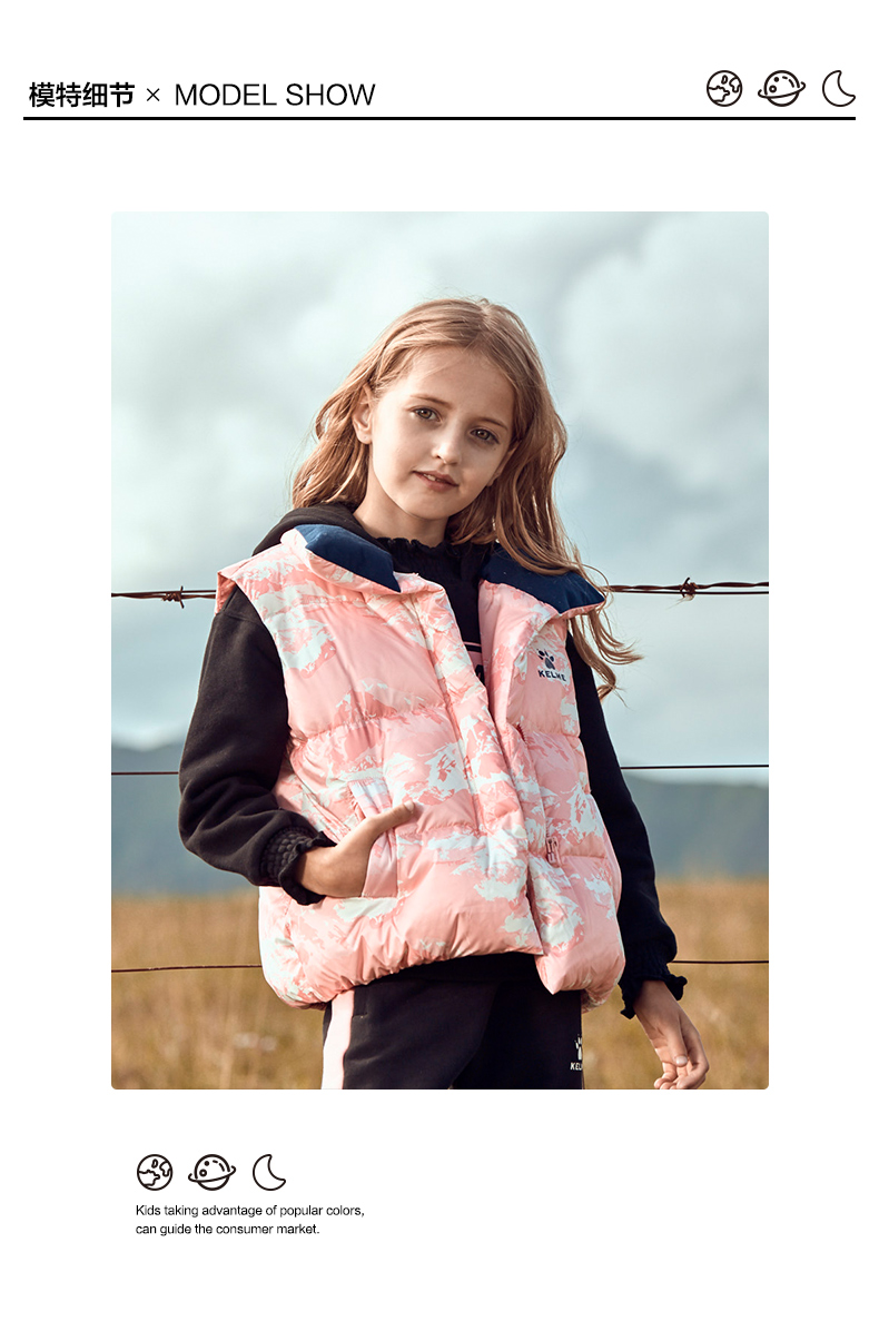 kelme(kids)儿童羽绒马甲舒适保暖女童双面穿羽绒背心