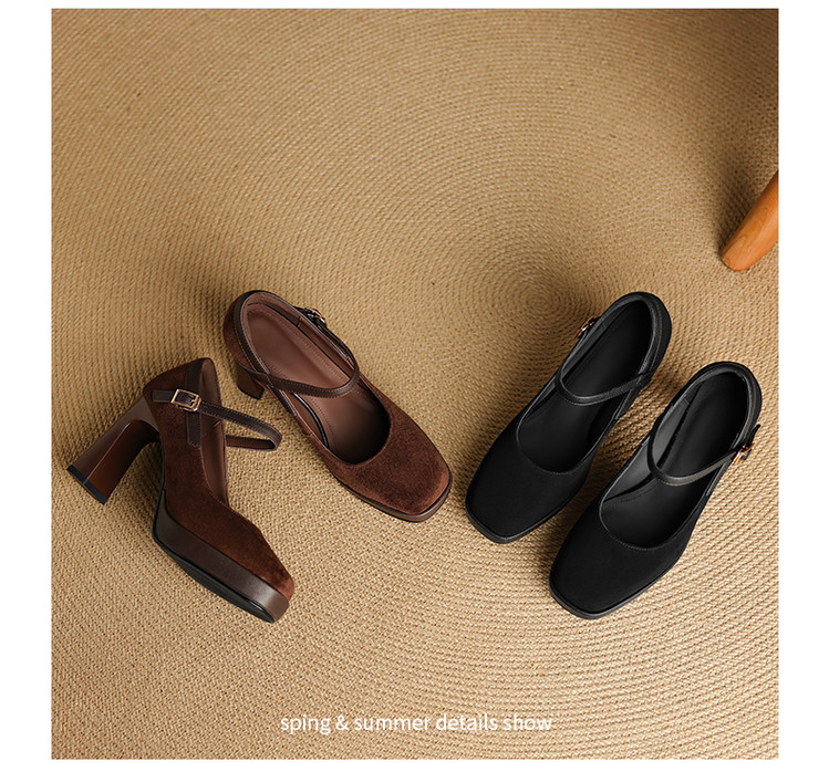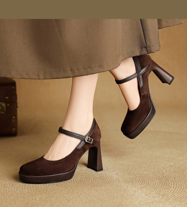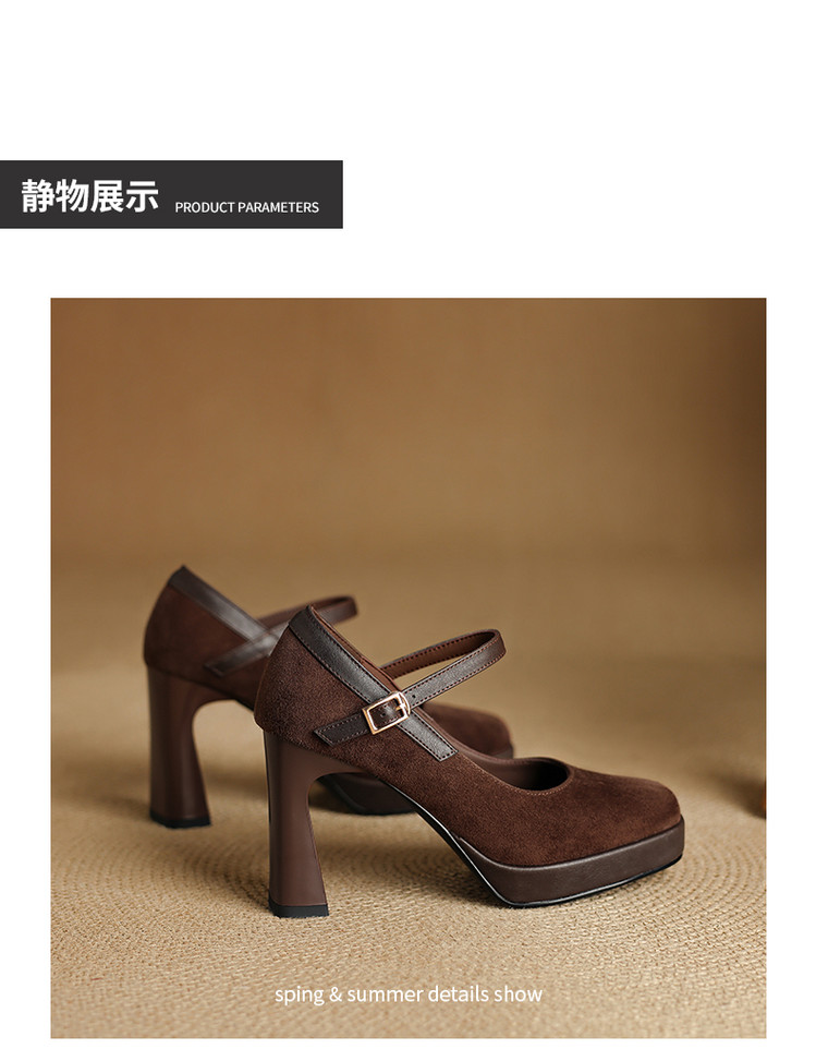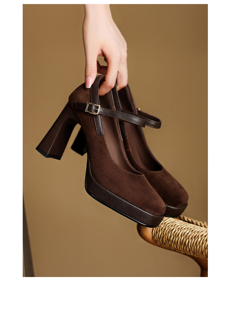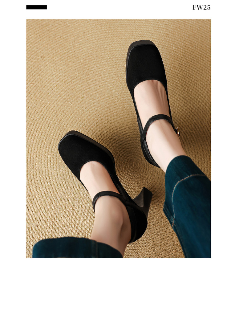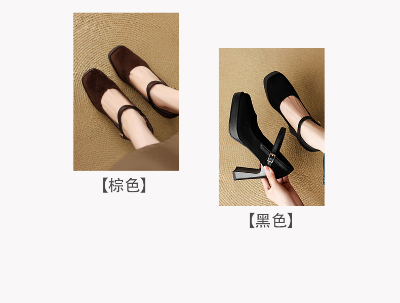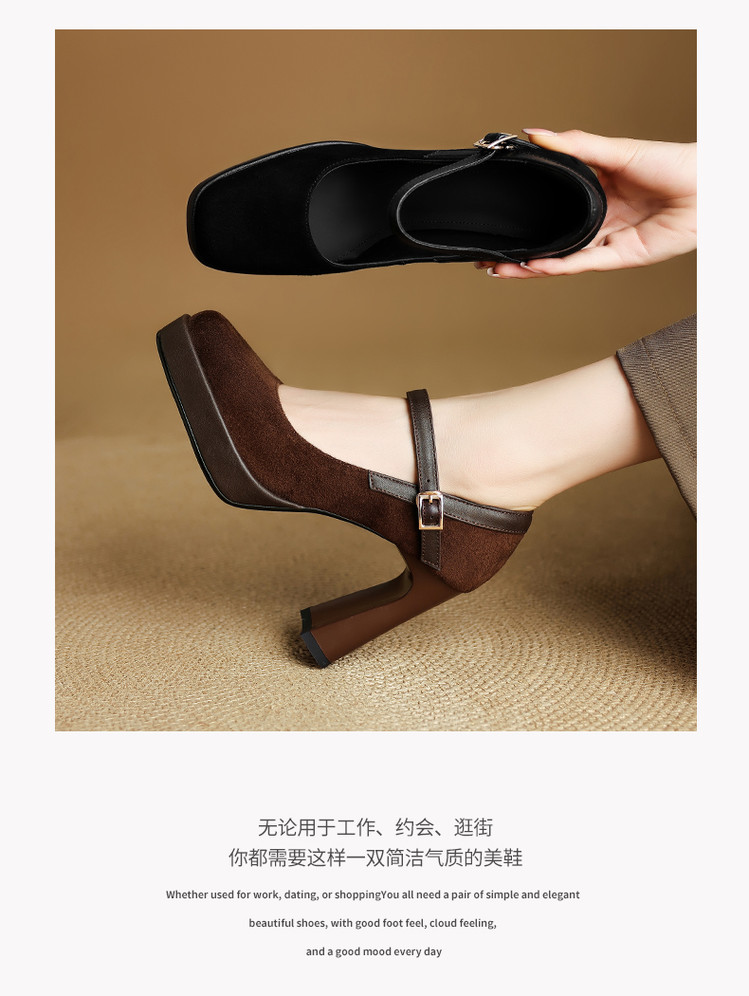 【预售5天】复古防水台高跟鞋女粗跟新款真皮方头一字带玛丽珍鞋不累脚MLD&AM999