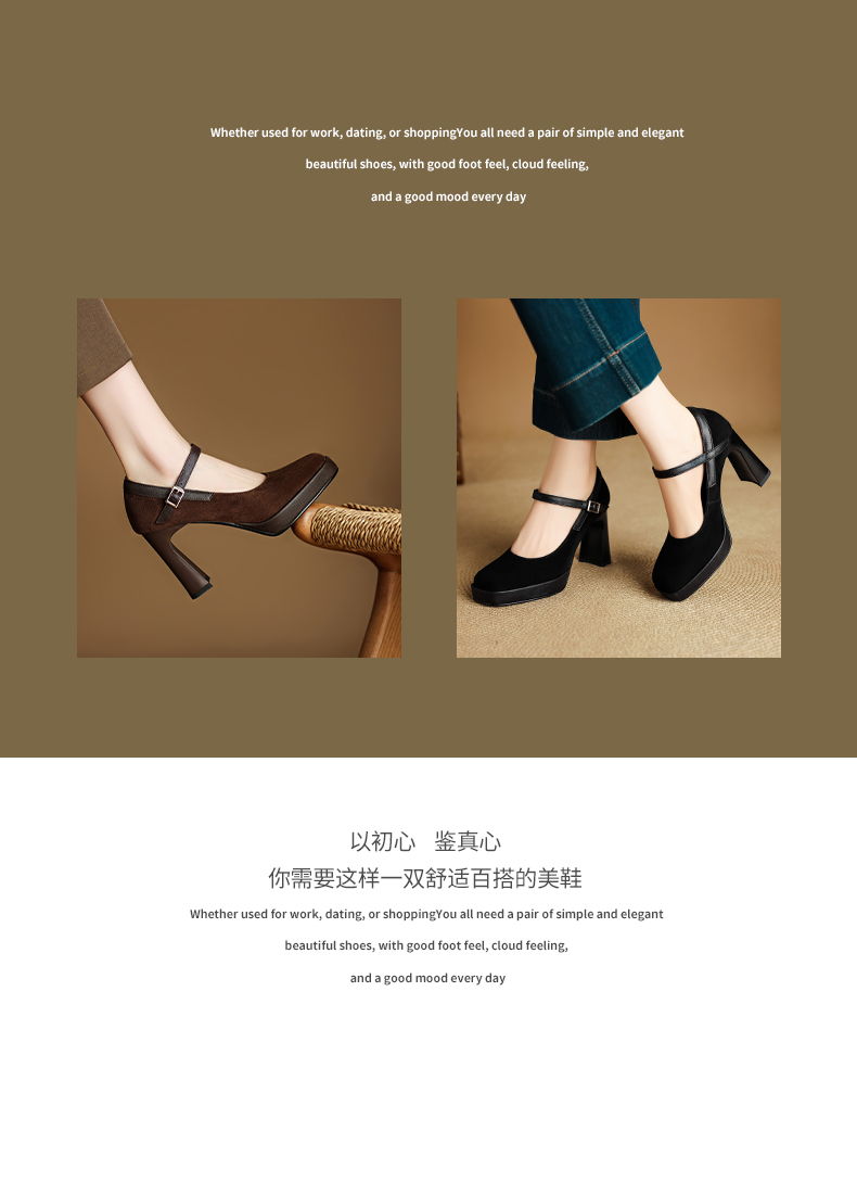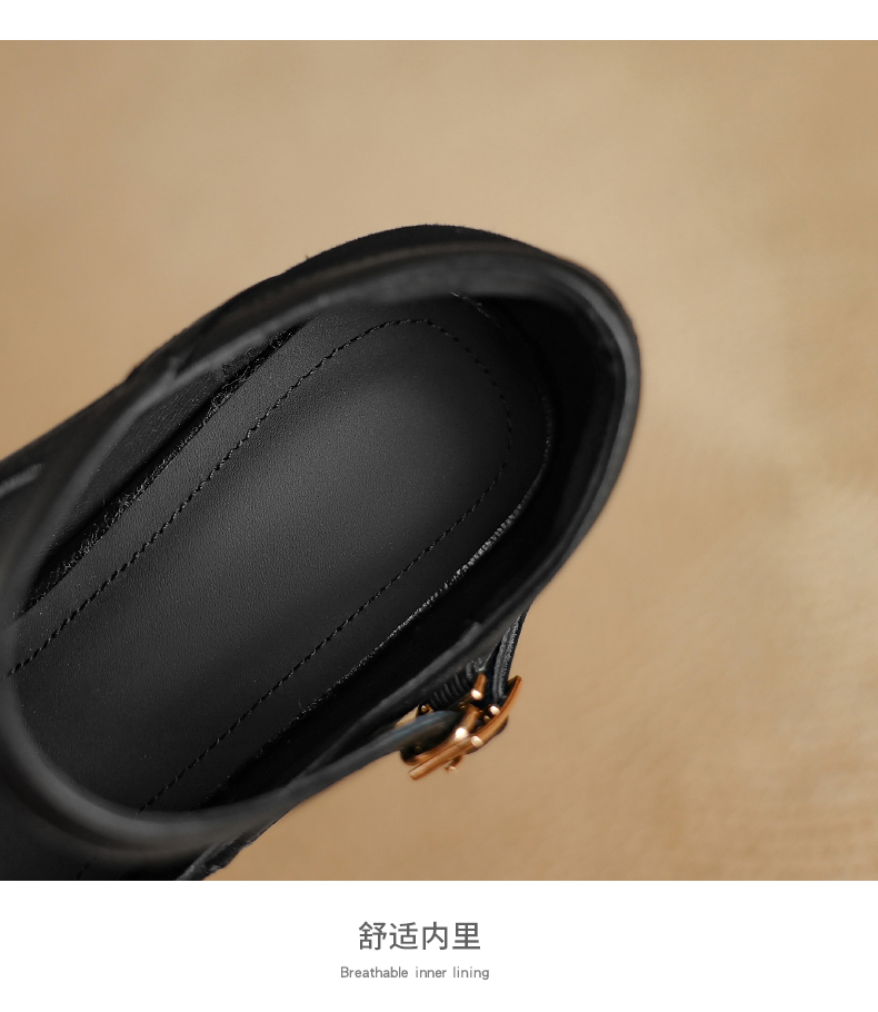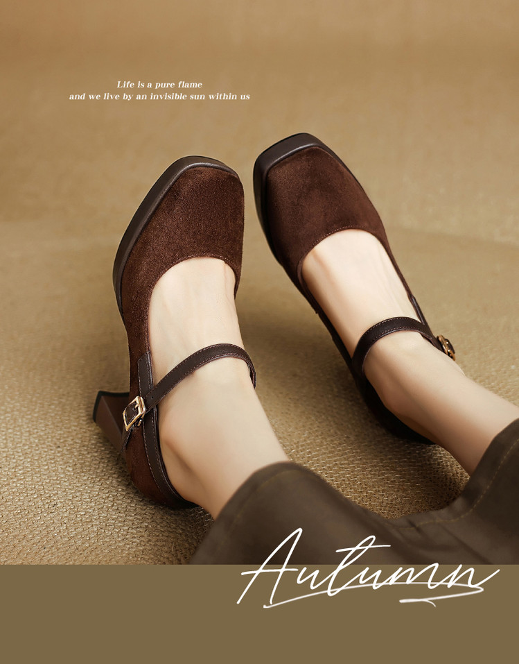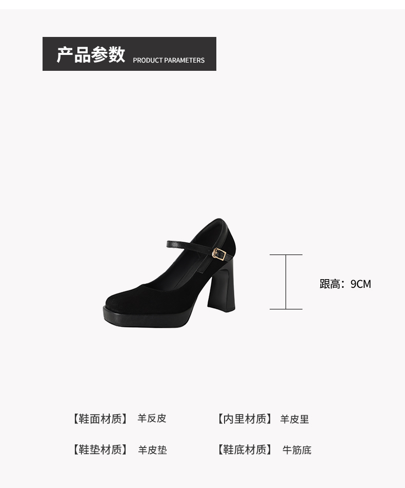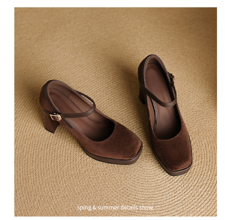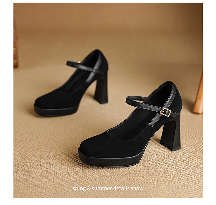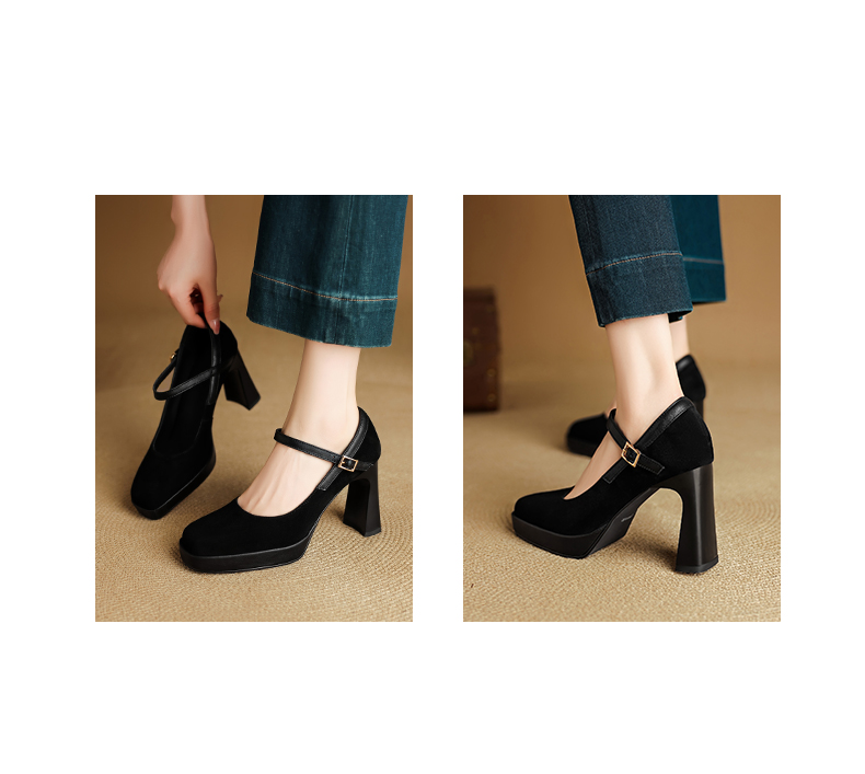 【预售5天】复古防水台高跟鞋女粗跟新款真皮方头一字带玛丽珍鞋不累脚MLD&AM999