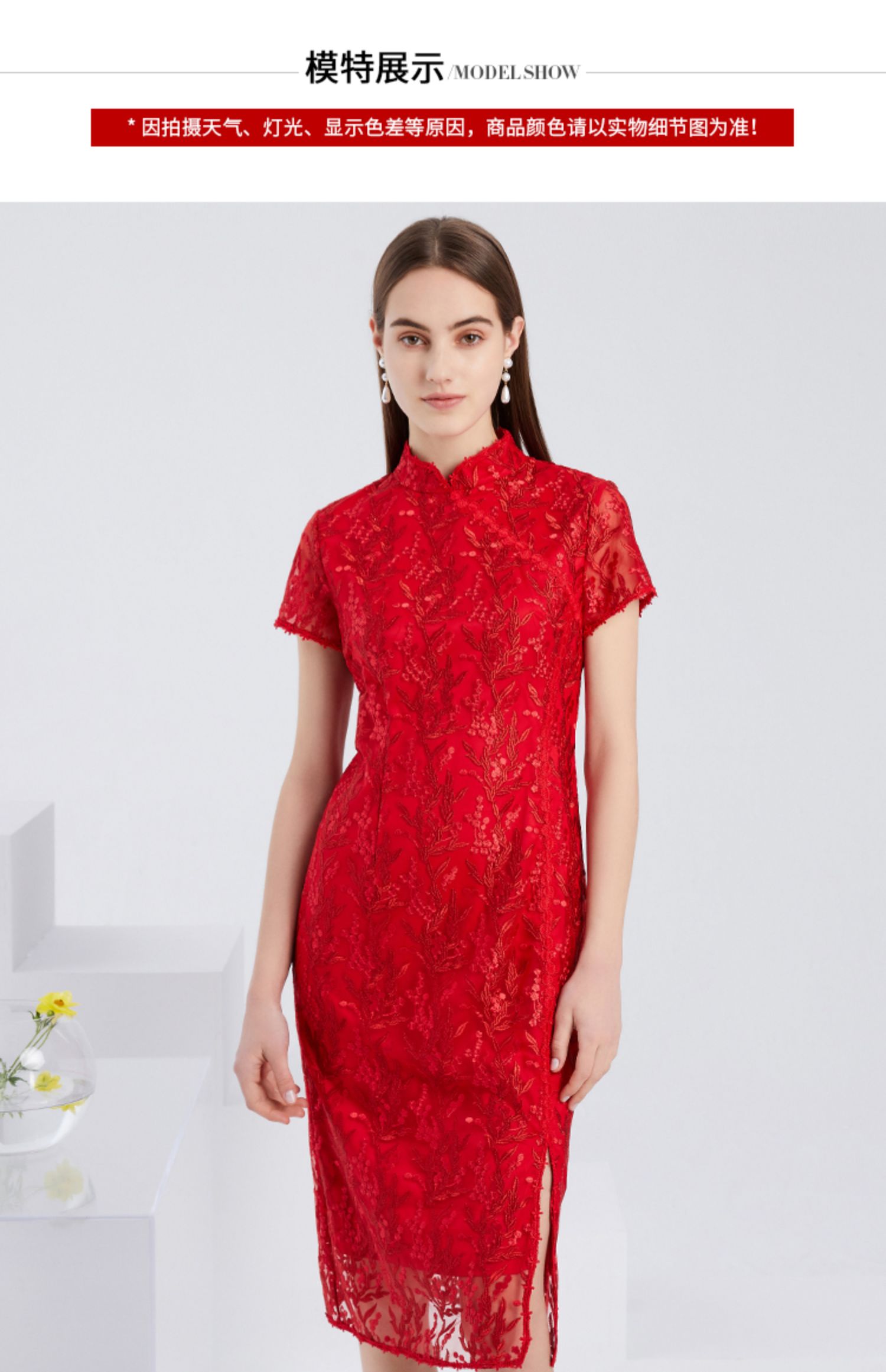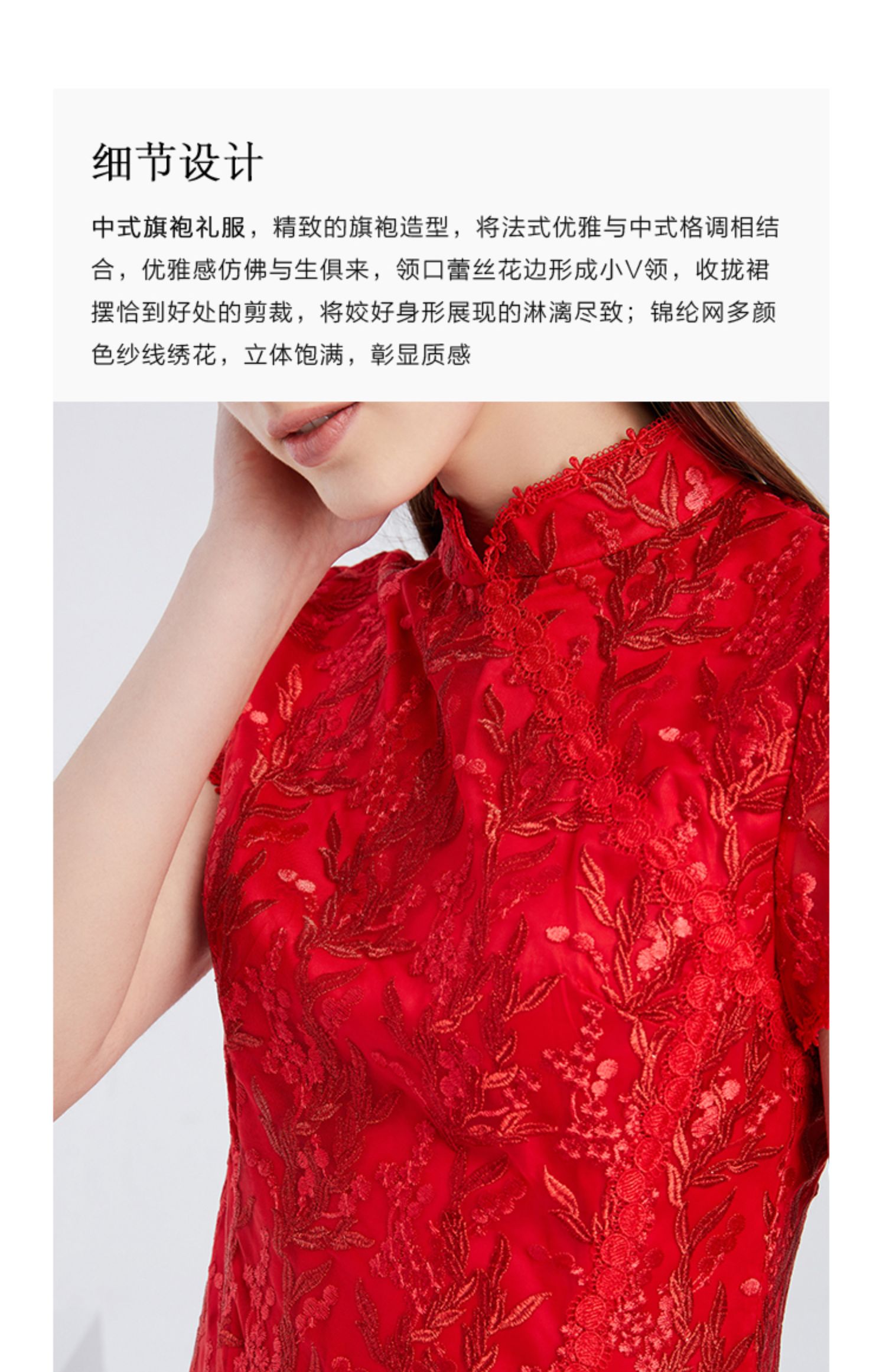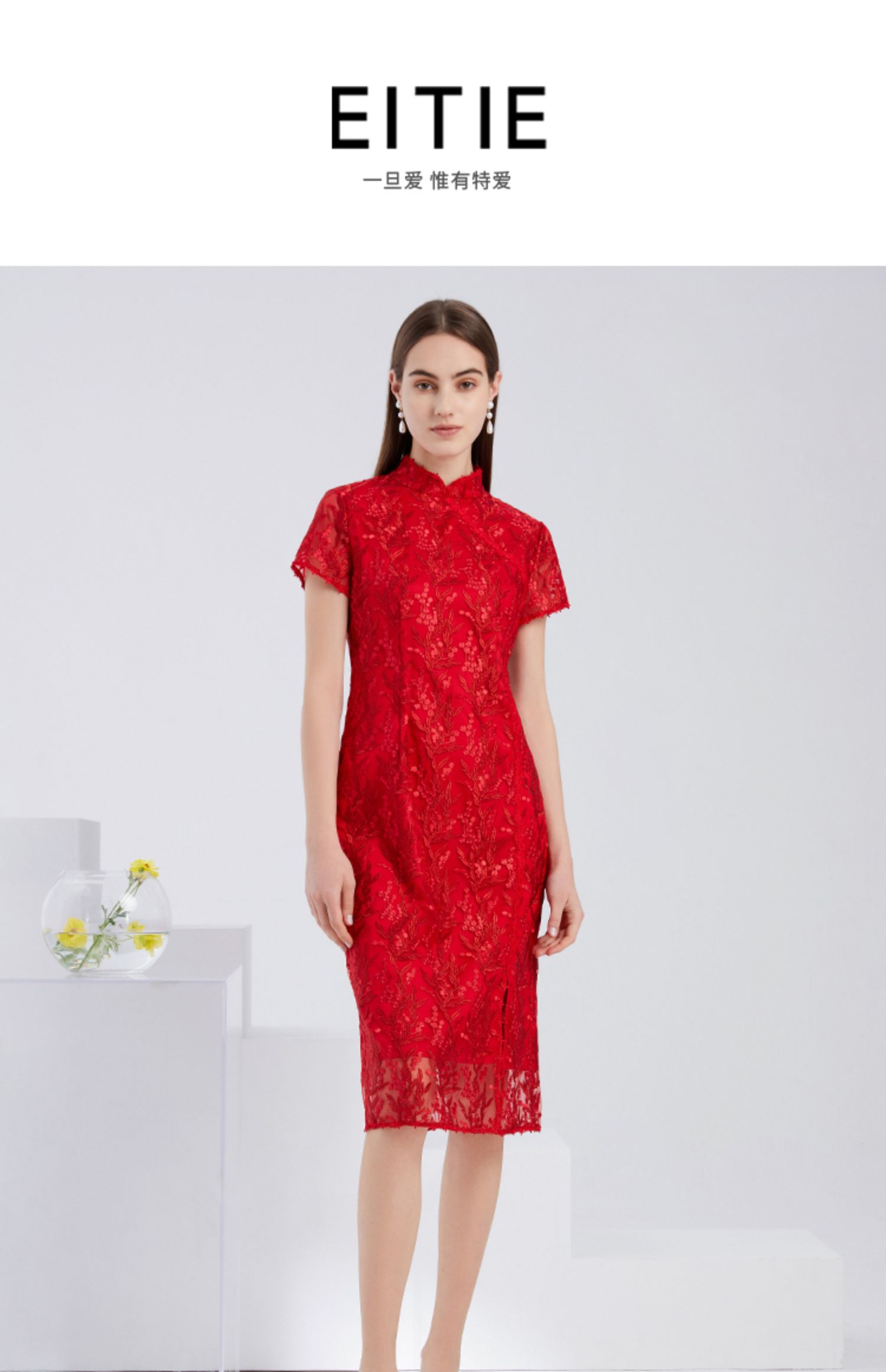 EITIE爱特爱春季新款中式优雅气质立领蕾丝旗袍礼服敬酒服女