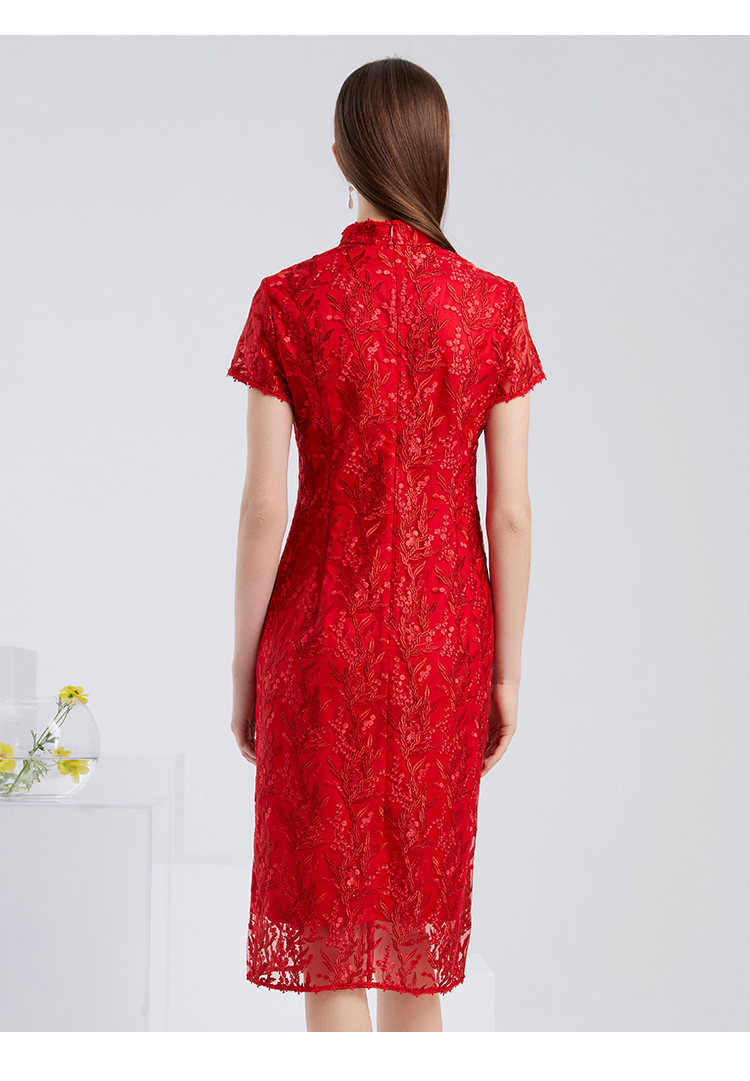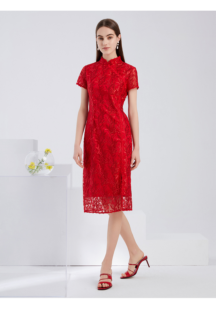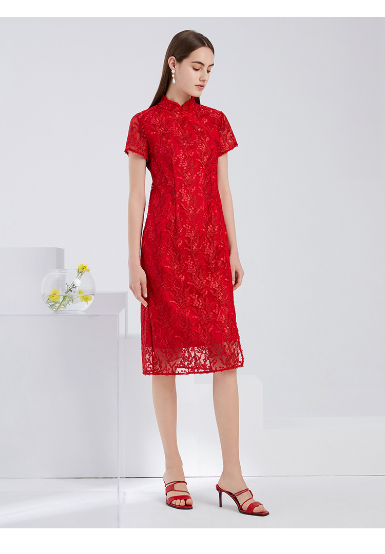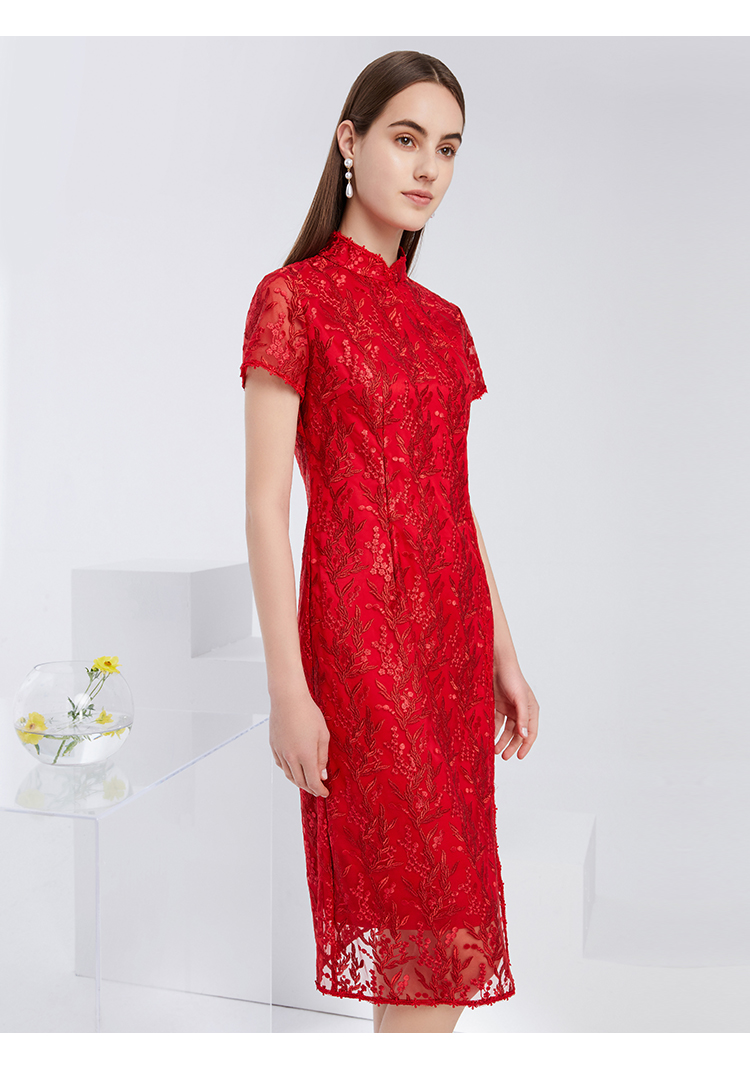 EITIE爱特爱春季新款中式优雅气质立领蕾丝旗袍礼服敬酒服女