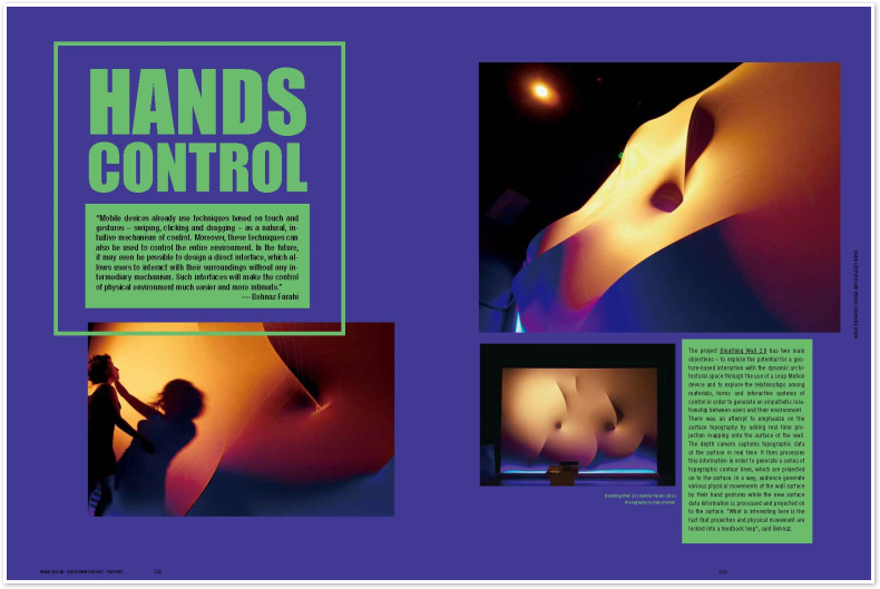 纵观人类的历史,我们的手一直都是改造自然和适应自然的最主要媒介。人类文明也为我们的手提供了更加高深的功能:书法、编织、雕塑、手语乃至手势感应。手本身能完成的功能也从原来单一的制造、 工艺和装饰,发展到了传播和催生界面发生这样一个更加抽象的层次。因为有了这些发展,我们得以目睹一批又一批围绕手以及手所传达的意义所创作的多种多样的设计和艺术作品。
